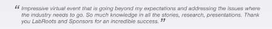 “Labroots' virtual conferences have allowed my teams to participate in first rate conferences on their own schedule without the need for travel for years. As a presenter, they have refined their platform to the point where the technology is simple to use and reliable with highly experienced people to help me. Now that we are in the time of the pandemic, this had made LabRoots even more vital to sharing information and continuing education in my field and they are an outstanding resource for all of us.” Matthew Flegal, Senior Manager InVivo Sciences, Charles Rivers Laboratories