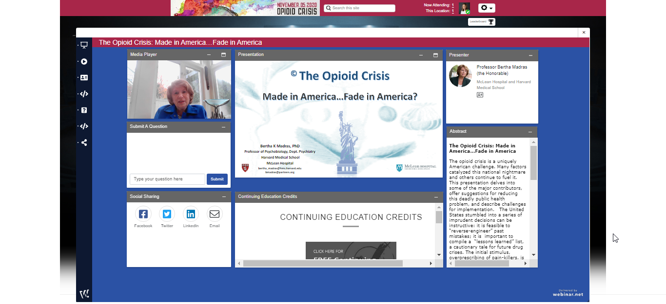 Webinar Title: “The Opioid Crisis: Made in America...Fade in America”