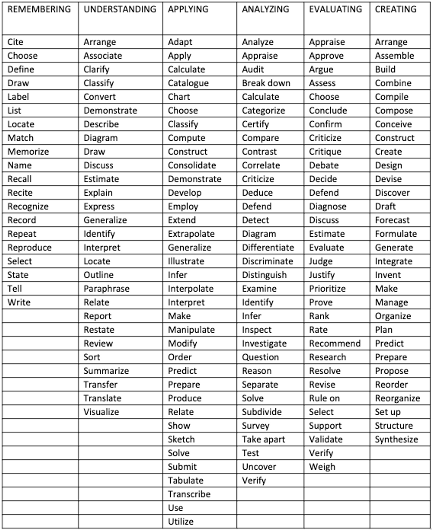 P.A.C.E.® has provided the following list of appropriate verbs that may be used to prepare measurable learning objectives.