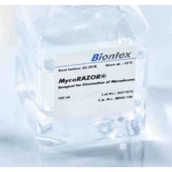 MycoRAZOR® is an outstanding effective antibiotic mixture against mycoplasma. It is active at low concentrations and against a large variety of mycoplasma. MycoRAZOR® acts on the protein synthesis mechanism by interfering with the ribosome translation of the mycoplasmas as well as with their transcription.