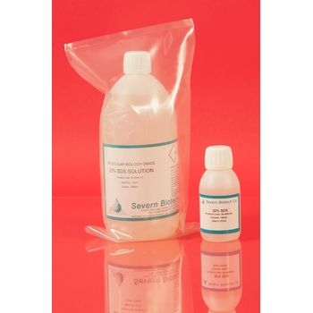 Difficult to weigh due to hazardous dispersal problems SDS is supplied formulated into 10% or 20% solutions ready for use. Made from sterile MB grade water the SDS solution is 0.2 micron filtered and supplied in 100ml, 500ml and 1000ml quantities. Larger quantaties can be supplied on request. SDS does not need sterilisation.