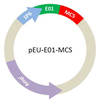 pEU vector is an expression vector that has been highly optimized to maximize synthetic efficiency through a wheat germ cell-free protein expression system. By introducing bacteriophage SP6 into the transcriptional promoter and a completely artificial E01 sequence selected from a randomized nucleic acid sequence pool into the translational enhancer, an mRNA with high translational activity can be produced, and protein synthesis efficiency can be maximized. In addition to the vector outlined above, our company also offers vectors with added His-tag, GST-tag and DYKDDDDK-tag that are suited to affinity purification. You can choose which one you need depending on the situation./