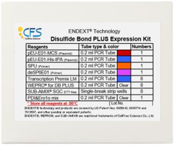 This product provides special reaction conditions to better support the formation of disulfide bonds in proteins expressed in the wheat germ cell-free expression system. Reaction conditions have been revised by adding a human endoplasmic reticulum oxidoreductase (Ero1α) and a Protein disulfide isomerase (PDI) to the translation reaction while using a different buffer composition for bilayer formation. Learn more here on how to we support disulfide bond formation in our expression system./
