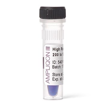 High Range DNA Ladder is a convenient ready-to-use dsDNA ladder supplied in 0.5 ml packs for 250 lanes. It ranges from 200 - 12 000 bp and is mass-calibrated for easy DNA quantification./
