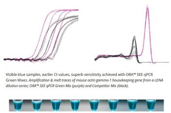 highQu qPCR master mixes are based on the small molecular inhibitor technology Hot Start PCR allowing to achieve highest sensitivity and specificity under both standard and fast qPCR cycling conditions. They provide excellent results on both AT and GC rich templates and guaranty rapid extension with early Ct values with minimum or no optimization.ORA™ SEE qPCR mixes provide an additional advantage of a simplified tracking of the process, as they are colored with an inert blue dye to make samples much better visible during pipetting and handling. Our master mixes are supplied with PCR Water to guaranty the best performance. To suit the broad instrument range the ORA™ qPCR Green Master mixes are available in different versions –with low or high ROX concentration./