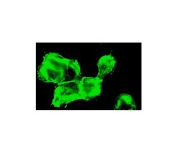 mouse monoclonal IgG2b; EGFR Antibody (R-1) is an IgG2b κ mouse monoclonal EGFR antibody that detects EGFR of mouse, rat and human origin by WB, IP, IF and FCM. EGFR Antibody (R-1) is available as the non-conjugated anti-EGFR antibody form, as well as multiple conjugated forms of anti-EGFR antibody, including agarose, HRP, PE, FITC and multiple Alexa Fluor® conjugates. The EGF receptor family comprises several related receptor tyrosine kinases that are frequently overexpressed in a variety of carcinomas. Members of this receptor family include EGFR (HER1), Neu (ErbB-2, HER2), ErbB-3 (HER3) and ErbB-4 (HER4), which form either homodimers or heterodimers upon ligand binding. Exons in the EGFR gene product are frequently either deleted or duplicated to produce deletion mutants (DM) or tandem duplication mutants (TDM), respectively, which are detected at various molecular weights. EGFR binds several ligands, including epidermal growth factor (EGF), transforming growth factor α (TGFα), Amphiregulin and heparin binding-EGF (HB-EGF). Ligand binding promotes the internalization of EGFR via Clathrin-coated pits and its subsequent degradation in response to its intrinsic tyrosine kinase. EGFR is involved in organ morphogenesis and maintenance and repair of tissues, but upregulation of EGFR is associated with tumor progression. The oncogenic effects of EGFR include initiation of DNA synthesis, enhanced cell growth, invasion and metastasis. Abrogation of EGFR results in cell cycle arrest, apoptosis or dedifferentiation of cancer cells, suggesting that EGFR may be an effective therapeutic target.