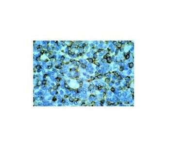 mouse monoclonal IgG2a; CD45RO Antibody (UCH-L1) is an IgG2a κ mouse monoclonal CD45RO antibody (also designated CD45 antibody, PTPRC antibody or protein tyrosine phosphatase receptor type C antibody) that detects the CD45RO protein of mouse, rat and human origin by WB, IP, IF, IHC(P) and FCM. CD45RO Antibody (UCH-L1) is available as both the non-conjugated anti-CD45RO antibody form, as well as multiple conjugated forms of anti-CD45RO antibody, including agarose, HRP, PE, FITC and multiple Alexa Fluor® conjugates. CD45R, also designated CD45 and PTPRC, has been identified as a transmembrane glycoprotein, broadly expressed among hematopoietic cells. Multiple isoforms of CD45R are distributed throughout the immune system according to cell type. These isoforms arise because of alternative splicing of exons 4, 5, and 6. The corresponding protein domains are characterized by the binding of monoclonal antibodies specific for CD45RA (exon 4), CD45RB (exon 5), CD45RC (exon 6) and CD45RO (exons 4 to 6 spliced out). The variation in these isoforms is localized to the extracellular domain of CD45R, while the intracellular domain is conserved. CD45R functions as a phosphotyrosine phosphatase, a vital component for efficient tyrosine phosphorylation induction by the TCR/CD3 complex. The tyrosine phosphatase activity of CD45R is contained within the conserved intracellular domain. Src and Syk family protein tyrosine kinases are utilized by the TCR/CD3 complex to initiate signaling cascades. Several members of these two families, including Lck, Fyn and ZAP-70, have been implicated as physiological substrates of CD45R.