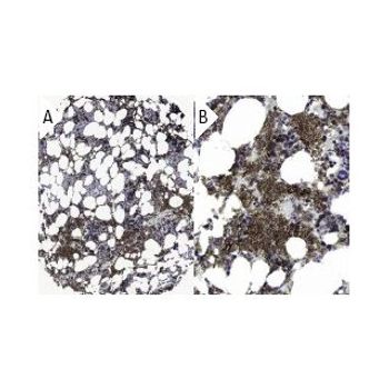 mouse monoclonal IgG1; Ankyrin-1 Antibody (8C3) is an IgG1 κ mouse monoclonal Ankyrin-1 antibody (also designated Ankyrin-1 antibody) that detects the Ankyrin-1 protein of mouse, rat and human origin by WB, IP, IF, IHC(P) and ELISA. Ankyrin-1 Antibody (8C3) is available as both the non-conjugated anti-Ankyrin-1 antibody form, as well as multiple conjugated forms of anti-Ankyrin-1 antibody, including agarose, HRP, PE, FITC and multiple Alexa Fluor® conjugates. Members of the Ankyrin family of proteins mediate the attachment of integral membrane proteins to the cytoskeleton. ANK1, ANK2 and ANK3 genes encode for the proteins in this family, Ankyrin-1 (also designated Ankyrin R), Ankyrin B and Ankyrin G, respectively. The proteins are structured similarly each composed of an N-terminal domain with multiple ankyrin repeats, a highly conserved central spectrin binding domain, and C-terminal regulatory domains which are susceptible to the most variance. Ankyrin-1 is a membrane protein that links the cytoskeleton to the plasma membrane in erythrocytes, cardiac and skeletal muscle, and brain. It is expressed as many isoforms, including a full length protein and several shorter isoforms. Ankyrin-1 has also been found to be defective in patients with hereditary spherocytosis (HS), a common hemolytic anemia.