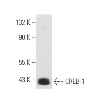 mouse monoclonal IgG2b; CREB-1 Antibody (24H4B) is an IgG2b κ mouse monoclonal CREB-1 antibody (also designated CREB-1 antibody or CREB antibody) that detects CREB-1A and CREB-1B of mouse, rat and human origin by WB, IP and IF. CREB-1 Antibody (24H4B) is available as the non-conjugated anti-CREB-1 antibody form, as well as multiple conjugated forms of anti-CREB-1 antibody, including agarose, HRP, PE, FITC and multiple Alexa Fluor® conjugates. Eukaryotic gene transcription is regulated by sequence-specific transcription factors that bind modular cis-acting promoter and enhancer elements. The ATF/CREB transcription factor family binds the palindromic cAMP response element (CRE) octanucleotide TGACGTCA. The ATF/CREB family includes CREB-1, CREB-2 (also designated ATF-4), ATF-1, ATF-2 and ATF-3. This family of proteins contains highly divergent N-terminal domains, but shares a C-terminal leucine zipper for dimerization and DNA binding. Although CREB can bind to DNA in an unphosphorylated state, it cannot activate transcription. Phosphorylation of CREB on Ser 133 by protein kinase A facilitates its interaction with the CREB-binding protein (CBP) and activates the basal transcription complex. CREB functions in neoglucogenesis through interactions with the nuclear coactivator PGC-1. CREB may play a role in the pathogenesis of type II diabetes and dilated cardiomyopathy.