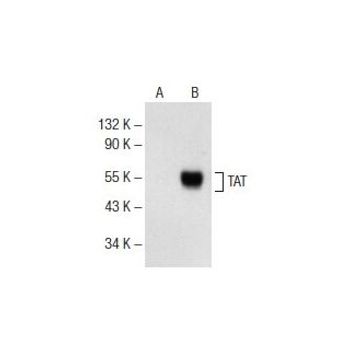 mouse monoclonal IgG1; TAT (tyrosine aminotransferase) is a 454 amino acid protein that localizes to mitochondria and belongs to the class-I pyridoxal-phosphate-dependent aminotransferase family. Existing as a homodimer, TAT uses pyridoxal phosphate as a cofactor to catalyze the conversion of L-tyrosine into p-hydroxyphenylpyruvate, a reaction that is important in amino acid degradation. Defects in the gene encoding TAT are the cause of tyrosinemia type 2 (TYRO2), an inborn error of metabolism that is associated with elevated levels of tyrosine in blood and urine and is characterized by palmoplantar keratosis, painful corneal ulcers and mental retardation. The gene encoding TAT maps to human chromosome 16, which encodes over 900 genes and comprises nearly 3% of the human genome.