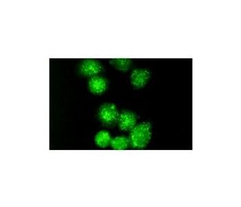 mouse monoclonal IgG2b; TFIID Antibody (TBP) is an IgG2b mouse monoclonal TFIID antibody (also designated TBP antibody, TF2D antibody, GTF2D1 antibody or TATA binding protein TBP antibody) that detects the TFIID protein of mouse, rat, human and Drosophila melanogaster origin by WB, IP and IF. TFIID Antibody (TBP) is available as both the non-conjugated anti-TFIID antibody form, as well as multiple conjugated forms of anti-TFIID antibody, including agarose, HRP, PE, FITC and multiple Alexa Fluor® conjugates. In eukaryotic systems, initiation of transcription from protein-coding genes is a complex process requiring RNA polymerase II and broad families of auxiliary transcription factors. Such factors can be divided into two major functional classes: the basal factors that are required for transcription of all Pol II genes, including TFIIA, TFIIB, TFIID, TFIIE, TFIIF and TFIIH; and sequence-specific factors that regulate gene expression. The basal transcription factors and Pol II form a specific multiprotein complex near the transcription start site by interacting with core promotor elements such as the TATA box generally located 25-30 base pairs upstream of the transcription start site. Binding of TFIID to the TATA element initiates assembly of the other factors into a pre-initiation complex. The TATA-binding subunit of TFIID (designated TFIIDt or TBP) from higher eukaryotes contains a highly conserved 180 amino acid C-terminal domain.