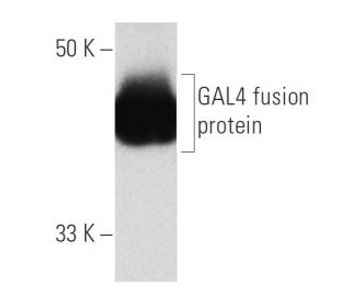 mouse monoclonal IgG2a; GAL4 Antibody (DBD) is an IgG2a κ mouse monoclonal GAL4 antibody (also designated GAL4 DNA binding domain antibody, GAL4 DBD Upstream Activation Sequence system antibody, GAL4 UAS system antibody, or yeast GAL4 DBD antibody) that detects the GAL4 protein. GAL4 Antibody (DBD) is available as both the non-conjugated anti-GAL4 antibody form, as well as multiple conjugated forms of anti-GAL4 antibody, including agarose, HRP, PE, FITC and multiple Alexa Fluor® conjugates. The GAL4 protein of Saccharomyces cerevisiae is one of the most thoroughly characterized transcriptional activators. Since the N-terminal 147 amino acid residues of GAL4 are sufficient to mediate specific and strong binding to DNA, but are incapable of efficient transcriptional activation, this protein fragment has frequently been used to confer specific DNA binding in experiments examining transcriptional activation functions of heterologous proteins. This approach is facilitated by the finding that higher eukaryotes lack endogenous proteins that enhance transcription from the consensus GAL4-binding site. Fusions between GAL4 (aa 1-147) and activating domains from a variety of transcriptional regulatory proteins can activate transcription in yeast, plant, insects and mammalian cells. A unique "two-hybrid" system has been developed using GAL4 fusions in yeast to identify specific protein-protein interactions.