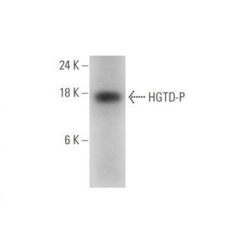 mouse monoclonal IgG2b; HGTD-P (human growth and transformation-dependent protein), also known as E2IG5 or FAM162A, is a 154 amino acid single-pass membrane protein belonging to the UPF0389 family. Considered a proapoptotic protein, HGTD-P is an effector of cell death induced by hypoxia-ischemia (HI) and is therefore considered a potential target in treating HI-induced brain damage. HGTD-P localizes to the mitochondria and, when overexpressed, induces the mitochondrial permeability transition by interacting with voltage dependent anion channels. HGTD-P facilitates apoptotic cell death via the mitochondrial apoptotic cascades, including permeability transition, cytochrome c release and caspase 9 activation. HGTD-P is regulated and activated by HIF-1α through a hypoxia-responsive element on the HGTD-P promoter region.