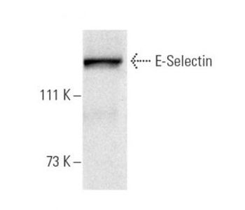 mouse monoclonal IgG2a; Selectins, also designated CD62 antigens, comprise a family of carbohydrate- binding proteins involved in mediating cellular interactions with leukocytes. L-Selectin (also designated LECAM-1 or CD62L) is expressed on the majority of B and naive T cells and on most monocytes, neutrophils and eosinophils. L-Selectin interacts with specific carbohydrates expressed by activated endothelial cells. P-Selectin (also designated GMP-140 or CD62P), expressed on activated platelets and endothelial cells, and E-Selectin (also designated ELMA-1 or CD62E), expressed on endothelial cells, exhibit overlapping ligand specificities. E-Selectin is expressed by cytokine-stimulated endothelial cells and is thought to be responsible for the accumulation of blood leukocytes at sites of inflammation by mediating the adhesion of cells to the vascular lining.