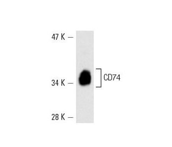 mouse monoclonal IgG1; CD74 Antibody (LN-2) is an IgG1 κ mouse monoclonal CD74 antibody (also designated HLA class II histocompatibility antigen gamma chain antibody) that detects the CD74 protein of mouse, rat and human origin by WB, IP, IF, IHC(P) and FCM. CD74 Antibody (LN-2) is available as both the non-conjugated anti-CD74 antibody form, as well as multiple conjugated forms of anti-CD74 antibody, including agarose, HRP, PE, FITC and multiple Alexa Fluor® conjugates. The human histocompatibility leukocyte antigen (HLA) class II-associated invariant chain is composed of at least four polypeptides. One of these polypeptide chains is expressed as a membrane-bound subunit and has been designated CD74. The loading of peptide onto the class II MHC protein (MHC II) appears to be regulated by CD74, which associates with MHC II during its migration to the endosomal compartment, where class II binds pep-tide. CD74 is expressed by cells of both T lymphocyte and B lymphocyte lineages. In fact, CD74 is broadly expressed in normal B lymphocytes, regardless of their histocompatibility leukocyte antigen (HLA) phenotype, while a subset of peripheral T lymphocytes that are MHC II negative do not express CD74.