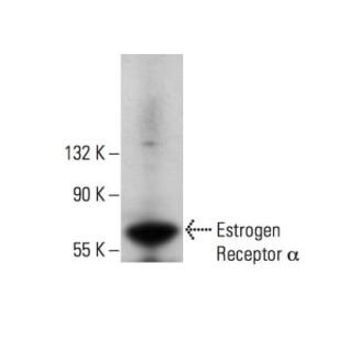 mouse monoclonal IgG2a; Estrogen Receptor alpha Antibody (D-12) is an IgG2a κ mouse monoclonal Estrogen Receptor alpha mouse monoclonal antibody (also designated ER alpha antibody or ERα antibody) that detects the protein of mouse, rat and human origin by WB, IP, IF, IHC(P) and ELISA. Estrogen Receptor alpha Antibody (D-12) is available as both the non-conjugated anti-Estrogen Receptor alpha antibody form as well as multiple conjugated forms of anti-Estrogen Receptor alpha antibody, including HRP, FITC, agarose, PE and multiple Alexa Fluor® conjugates. Estrogen receptors (ER) are members of the steroid/thyroid hormone receptor superfamily of ligand-activated transcription factors. Estrogen receptors, including ERα and ERβ, contain DNA binding and ligand binding domains and are critically involved in regulating the normal function of reproductive tissues. They are located in the nucleus, though some estrogen receptors associate with the cell surface membrane and can be rapidly activated by exposure of cells to estrogen. ERα and ERβ have been shown to be differentially activated by various ligands. Receptor-ligand interactions trigger a cascade of events, including dissociation from heat shock proteins, receptor dimerization, phosphorylation and the association of the hormone activated receptor with specific regulatory elements in target genes. Evidence suggests that ERα and ERβ may be regulated by distinct mechanisms even though they share many functional characteristics.