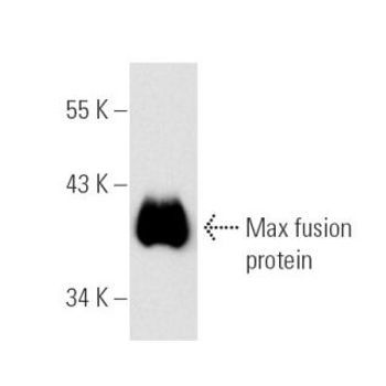 mouse monoclonal IgG1; Max Antibody (H-2) is an IgG1 κ mouse monoclonal Max antibody (also designated MAX antibody, or BHLHD4 antibody) that detects the Max protein of mouse, rat and human origin by WB, IP, IF, IHC(P) and ELISA. Max Antibody (H-2) is available as both the non-conjugated anti-Max antibody form, as well as multiple conjugated forms of anti-Max antibody, including agarose, HRP, PE, FITC and multiple Alexa Fluor® conjugates. It is now well established that the nature and relative abundance of individual subunits of different classes of transcription factors can positively or negatively regulate levels of gene expression. Myc proteins homodimerize and bind DNA poorly, if at all, at physiological levels. Max is a nuclear localized bHLH-Zip protein initially identified by screening a B cell expression library with the bHLH-Zip region of c-Myc. Max homodimers and the Myc-Max heterodimers bind the sequence CACGTG; however the binding of the hetero-dimeric complex is stronger than the Max homodimer. The Max gene products have been identified as (Max) and (Max 9) proteins that differ by a 9 amino acid insertion N-terminal to the basic region. In contrast to Myc, which is highly regulated during progression through the cell cycle, Max is highly stable and is much more abundant than Myc. Two members of the bHLH-Zip protein family, designated Mad and Mxi1, homodimerize poorly but form heterodimeric complexes with Max that have opposing functions to Myc-Max heterodimers with respect to regulation of gene expression.