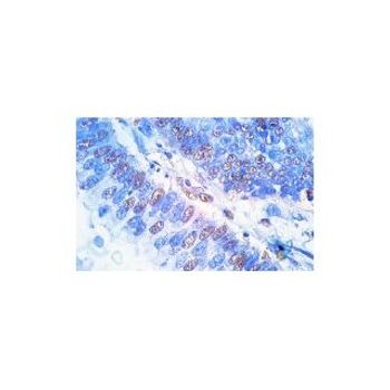 mouse monoclonal IgM; The v-Fos oncogene was initially identified as the transforming gene of two independent murine osteosarcoma virus isolates and an avian nephroblastoma virus. The cellular homolog, c-Fos, encodes a nuclear phosphoprotein that is rapidly and transiently induced by a variety of agents and functions as a transcriptional regulator for several genes. In contrast to c-Jun proteins, which form homo- and heterodimers which bind to specific DNA TPA response elements (TREs), c-Fos proteins are only active as heterodimers with members of the Jun gene family. Murine Fos B encodes a nuclear protein of 338 amino acids which has 70% homology with c-Fos, exhibits similar kinetics of expression as c-Fos and forms heterodimers with both c-Jun and Jun B, which bind to TRE DNA response elements. Functional homologs of c-Fos and Fos B include Fra-1 and Fra-2 genes.