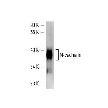 mouse monoclonal IgG1; N-cadherin Antibody (D-4) is an IgG1 κ mouse monoclonal N-cadherin antibody (also designated NCAD antibody, CD325 antibody or CDH2 antibody) that detects the N-cadherin protein of mouse, rat and human origin by WB, IP, IF, IHC(P) and ELISA. N-cadherin Antibody (D-4) is available as both the non-conjugated anti-N-cadherin antibody form, as well as multiple conjugated forms of anti-N-cadherin antibody, including agarose, HRP, PE, FITC and multiple Alexa Fluor® conjugates. Cadherins comprise a family of Ca2+-dependent adhesion molecules that function to mediate cell-cell binding critical to the maintenance of tissue structure and morphogenesis. The classical cadherins, E-, N- and P-cadherin, consist of large extracellular domains characterized by a series of five homologous NH2 terminal repeats. The most distal of these cadherins is thought to be responsible for binding specificity, transmembrane domains and carboxy-terminal intracellular domains. The relatively short intracellular domains interact with a variety of cytoplasmic proteins, such as b-catenin, to regulate cadherin function. Members of this family of adhesion proteins include rat cadherin K (and its human homolog, cadherin-6), R-cadherin, B-cadherin, E/P cadherin and cadherin-5.