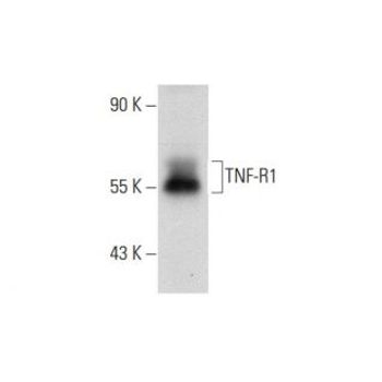 mouse monoclonal IgG2b; TNF-R1 Antibody (H-5) is an IgG2b κ mouse monoclonal TNF-R1 antibody (also designated TNFR1 antibody, TNFRSF1A antibody, TNF receptor superfamily member 1A antibody) that detects the TNF-R1 protein of mouse, rat and human origin by WB, IP, IF, IHC(P) and ELISA. TNF-R1 Antibody (H-5) is available as both the non-conjugated anti-TNF-R1 antibody form, as well as multiple conjugated forms of anti-TNF-R1 antibody, including agarose, HRP, PE, FITC and multiple Alexa Fluor® conjugates. Tumor necrosis factor (TNF) is a pleiotropic cytokine whose function is mediated through two distinct cell surface receptors. These receptors, designated TNF-R1 and TNF-R2, are expressed on most cell types. The majority of TNF functions are primarily mediated through TNF-R1, while signaling through TNF-R2 occurs less extensively and is confined to cells of the immune system. Both of these proteins belong to the growing TNF and nerve growth factor (NGF) receptor superfamily, which includes FAS, CD30, CD27 and CD40. The members of this superfamily are type I membrane proteins that share sequence homology confined to the extracellular region. TNF-R1 shares a motif coined the "death domain" with FAS and three structurally unrelated signaling proteins, TRADD, FADD and RIP (1,3-8). This "death domain" is required for transduction of the apoptotic signal.