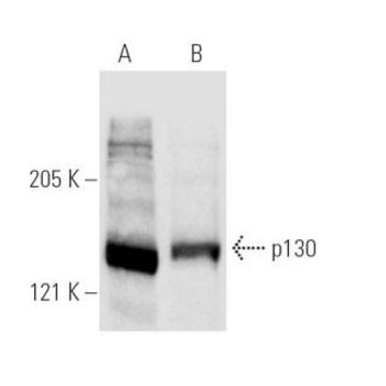 mouse monoclonal IgG1; The human retinoblastoma gene product Rb plays an important role in the negative regulation of cell proliferation. The Rb family includes p107 and p130, which form complexes with E2F proteins, and share a high degree of structural homology in the adenovirus E1A binding domain (i.e., "pocket region"), which plays a primary role in the function of these proteins. The Rb family members undergo cell cycle dependent phosphorylation during mid-G1 to S phase transition, which is dependent upon the activity of cyclin D/cdk4. In contrast to pRb and p107, p130 is also phosphorylated during G0 and the early G1 phase of the cell cycle. p130 is specifically phosphorylated on serine and threonine residues in cells arrested in G0 by serum deprivation or density arrest, and these residues are clustered within a short co-linear region unique to p130 defined as the Loop.