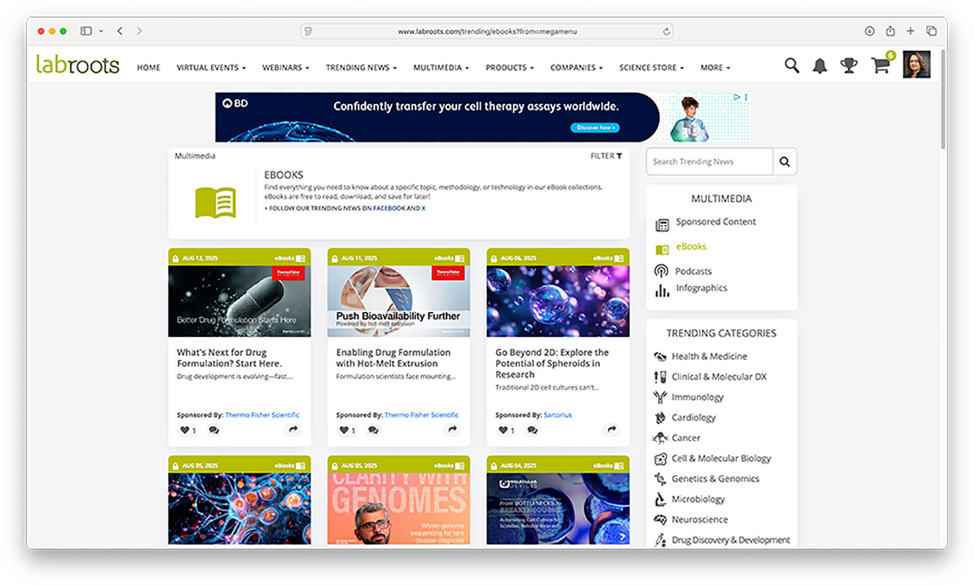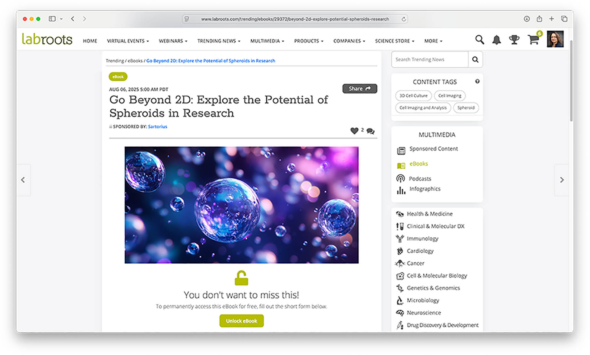 Whether we write it, or you do, eBooks are a unique way to share your long-form downloadable content to a targeted Labroots audience of your choosing.