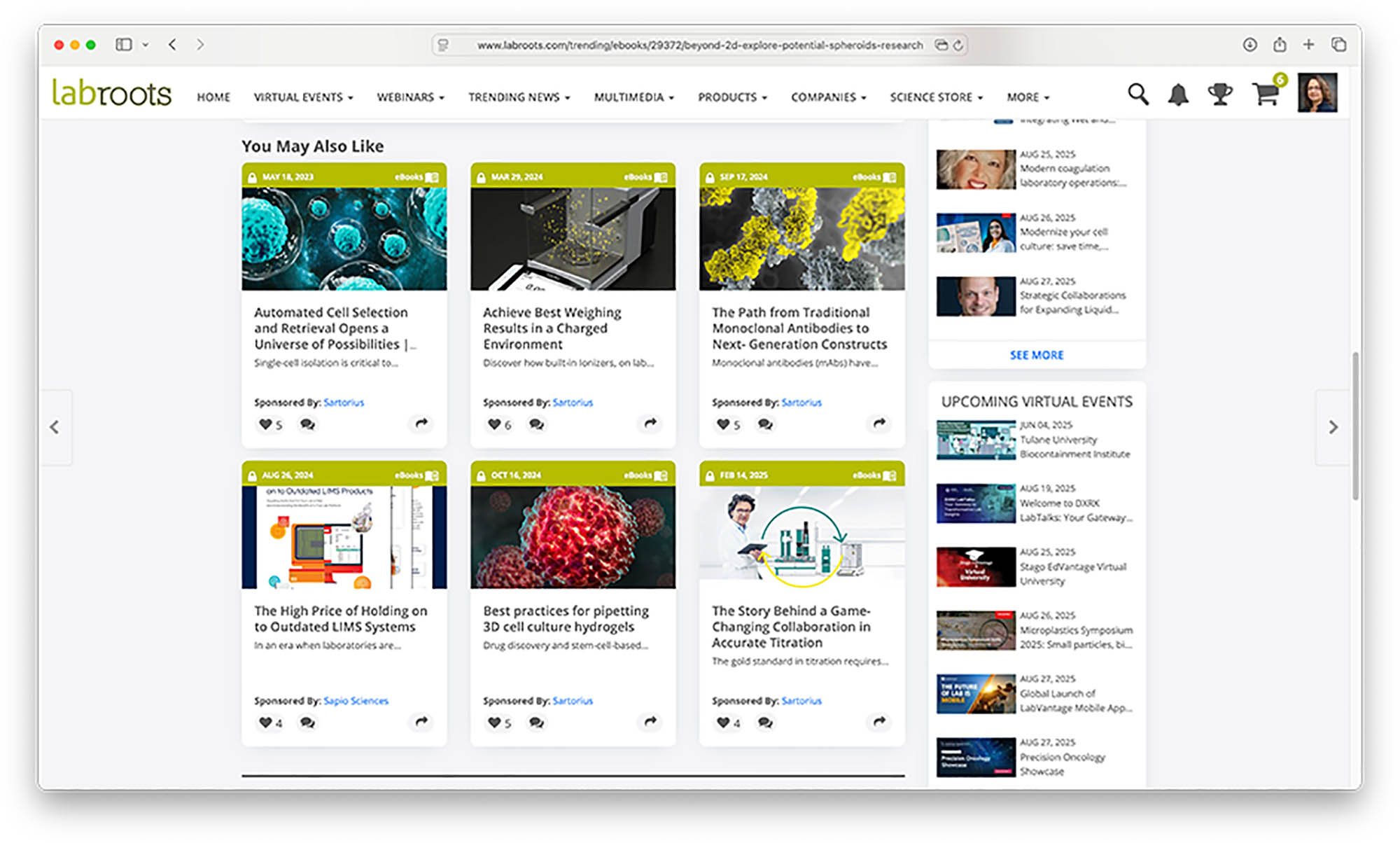 You provide the content (any desired copy and imagery) on our eBook Preferences Form, we turn it into something comprehensive and cohesive that will live on the Labroots site. It’s that simple!