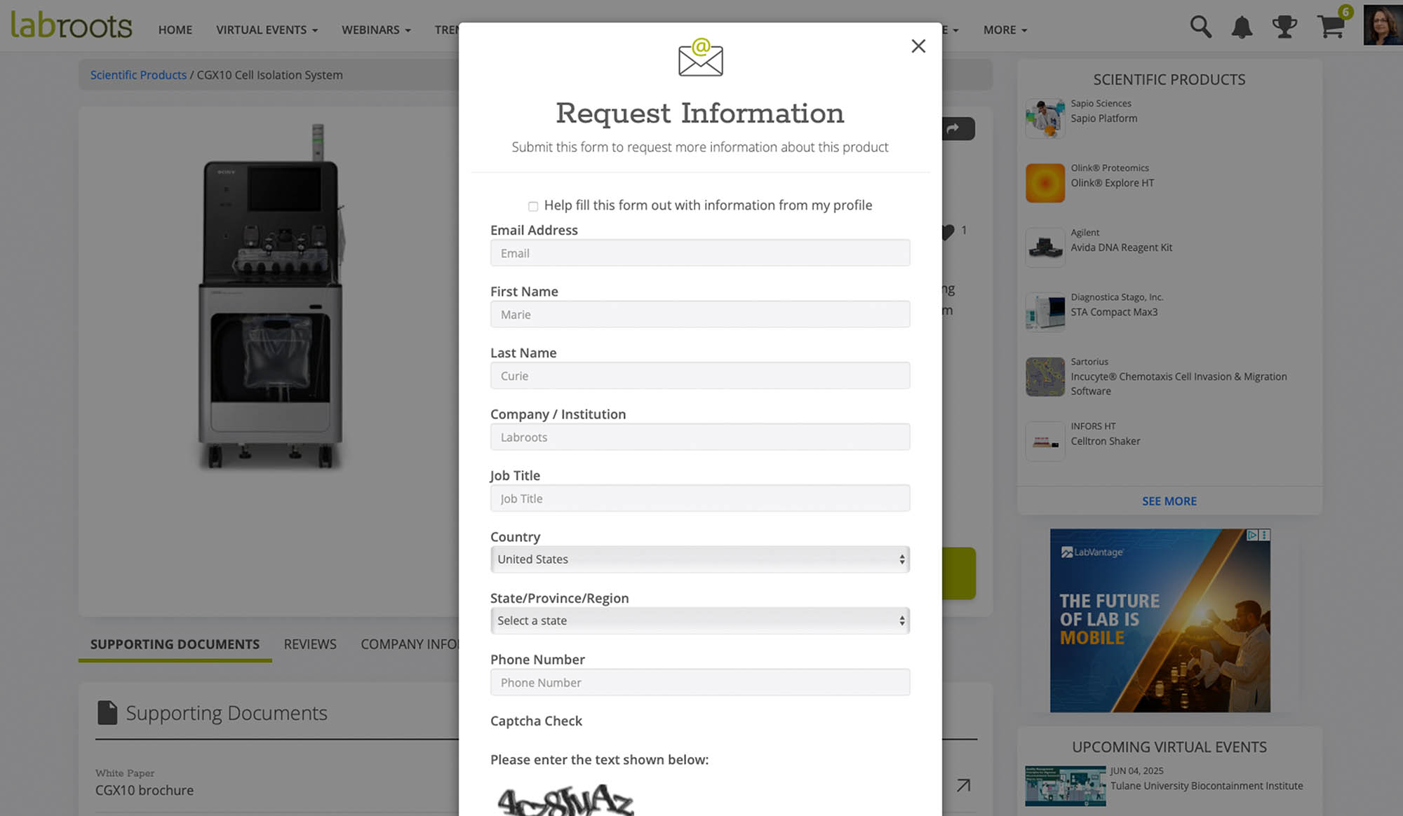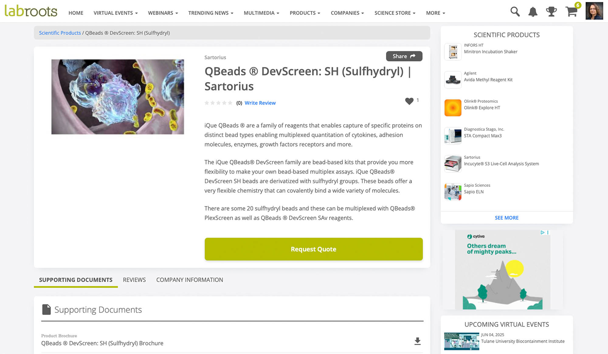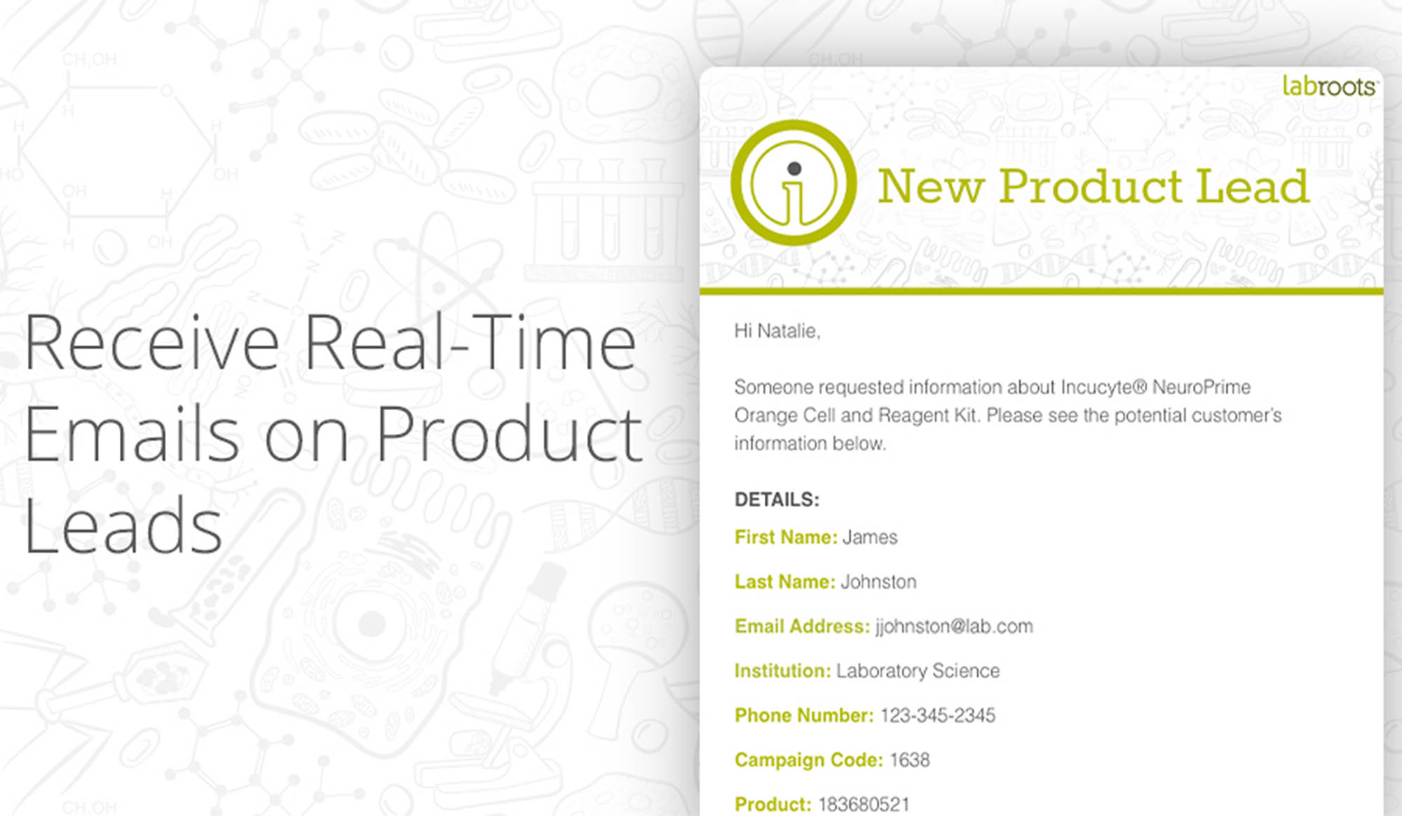 - Once the materials are coordinated, the Labroots team will work to get everything up in the database and run the product listings by you for your approval.
