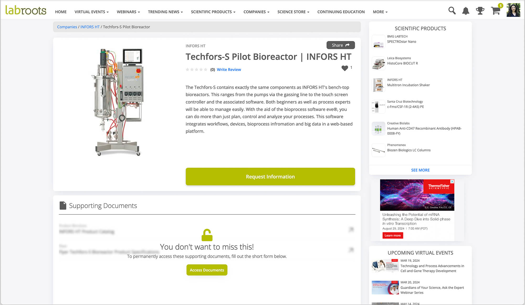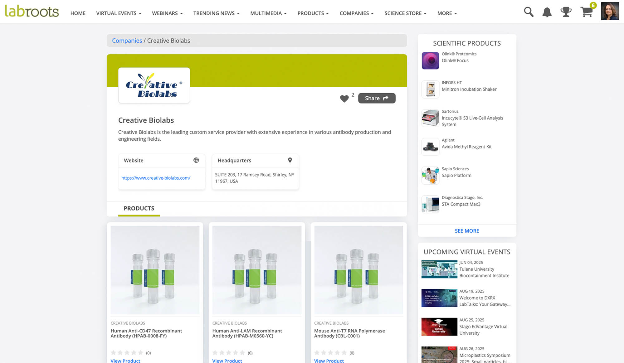 *Company pages include all Labroots purchased products such as webinars, virtual events, eBooks, sponsored content, and now product listings.