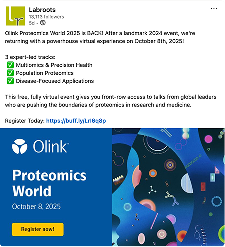 - Distribution on Labroots and three category-specific social media pages three times over six weeks