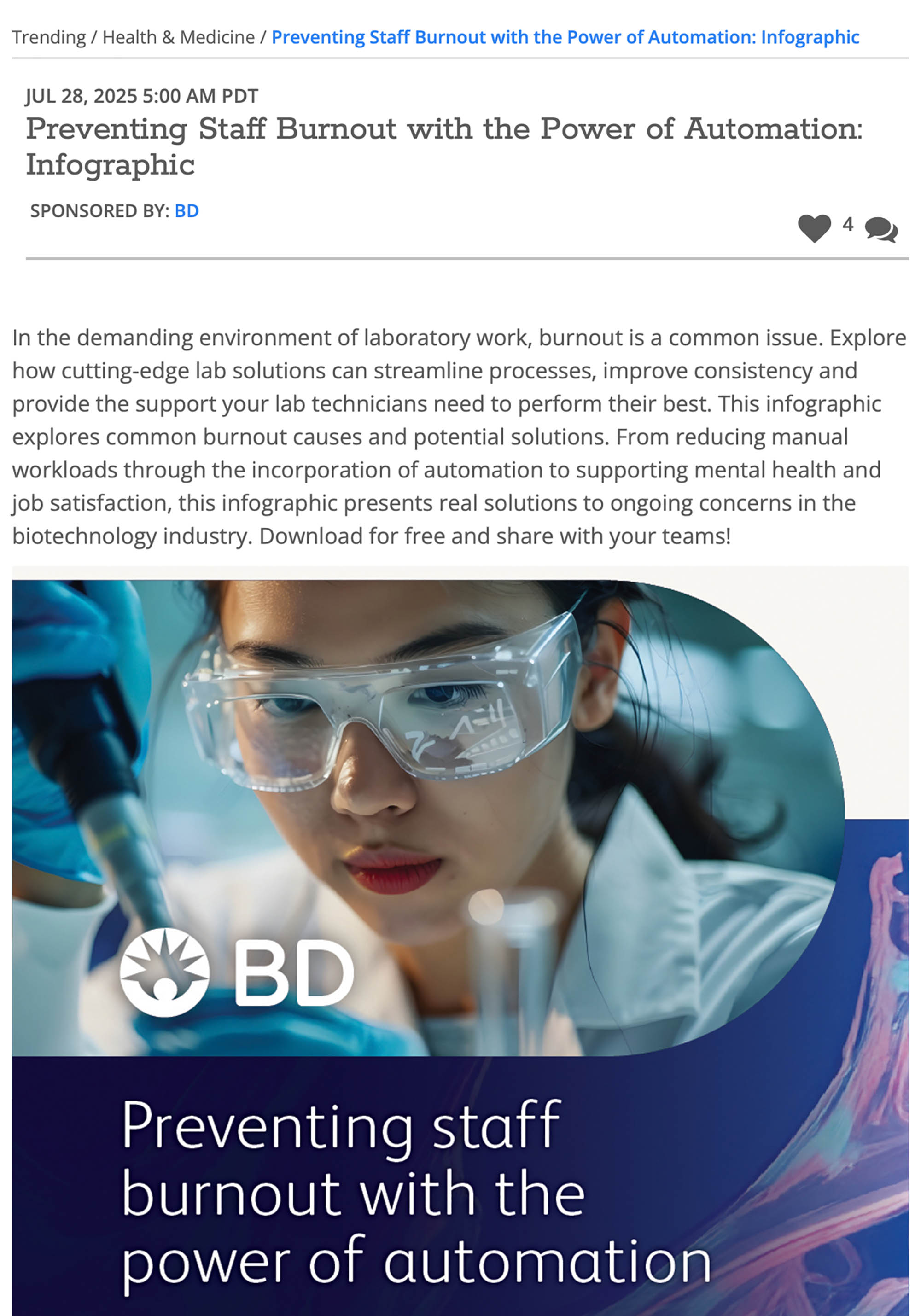 - One article (provided by you) shared on Labroots Trending News, with detailed company information shown as the “author”, and up to eight in-article links