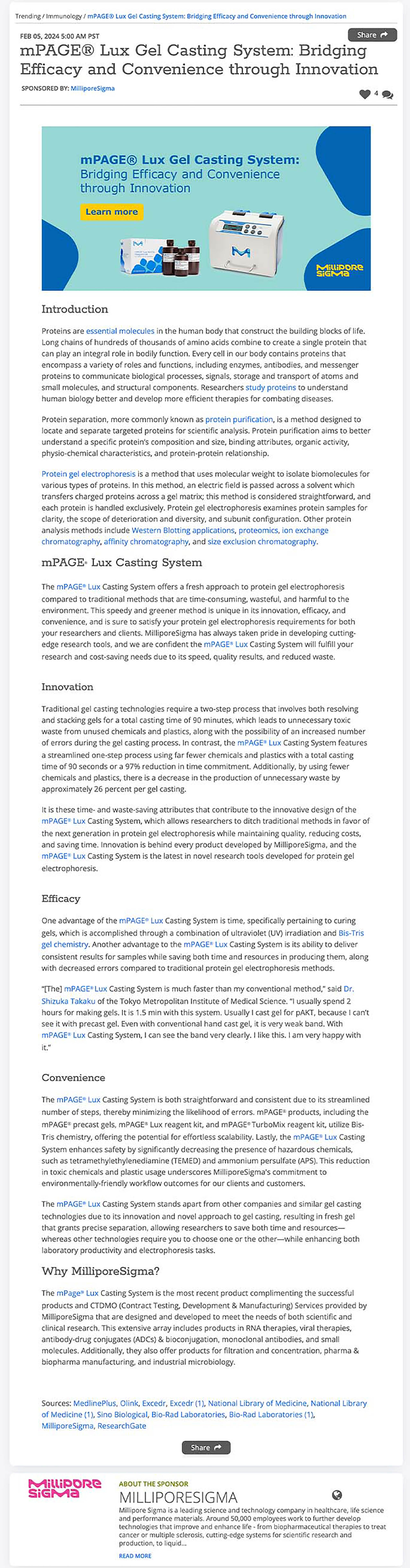 Labroots sponsored content articles have gained significant traction with our clients. Tap into the Labroots user database by sharing an article, written by you, in the Trending News section of the website. Sponsored content allows your branded message to engage with a new audience in a familiar and trusted environment. These articles offer a strategic opportunity to enhance the visibility of your company and products.