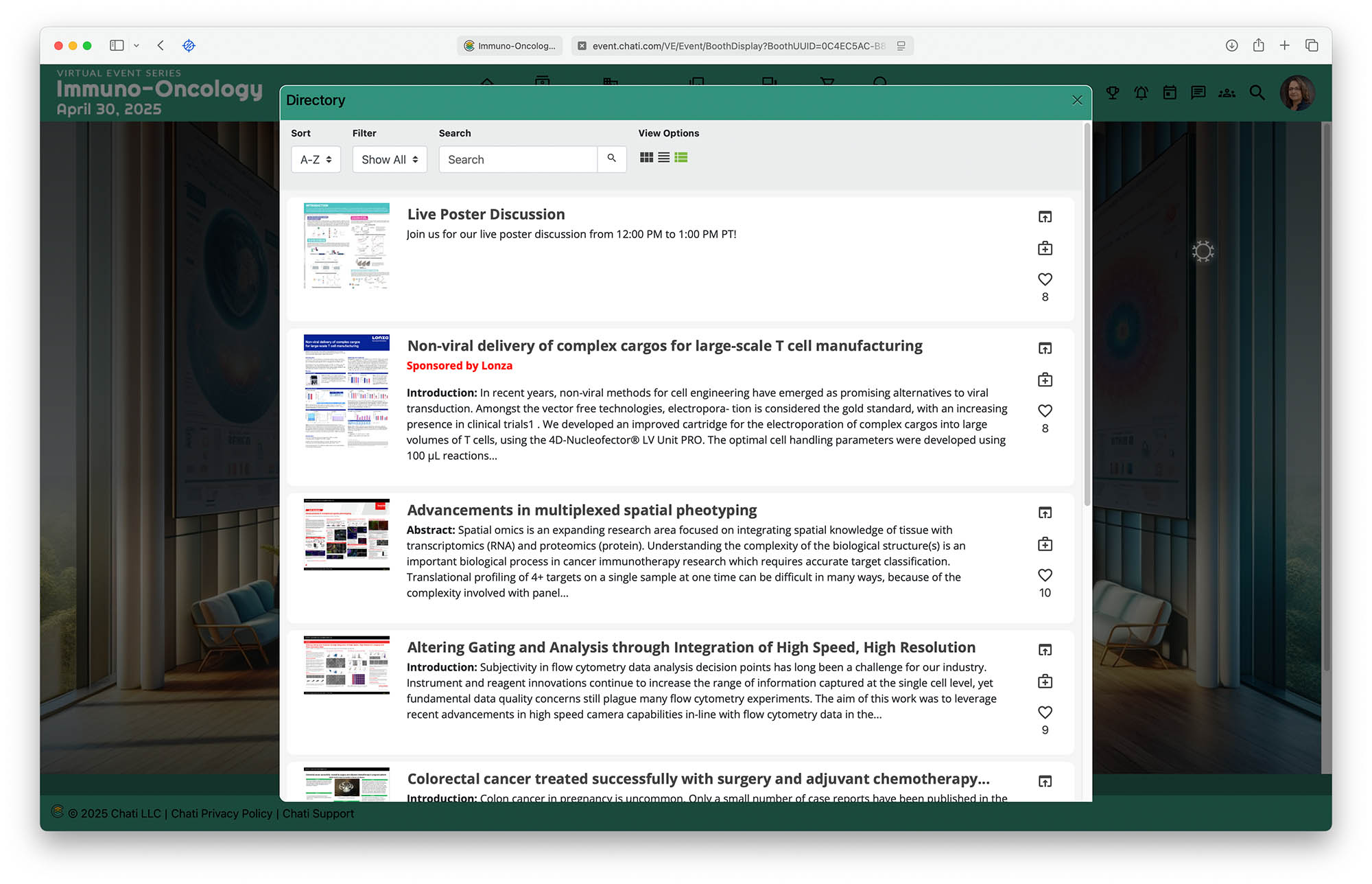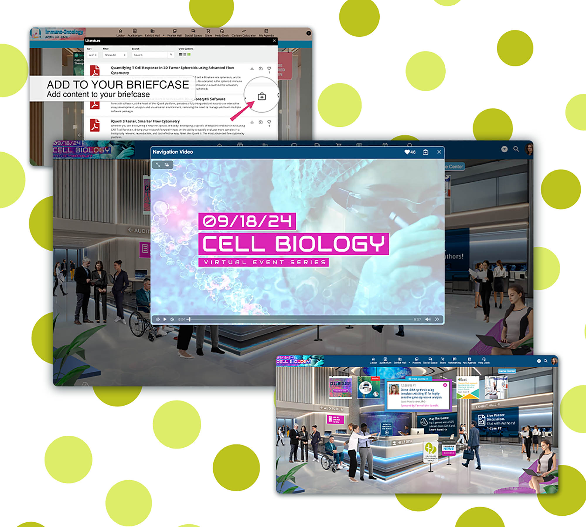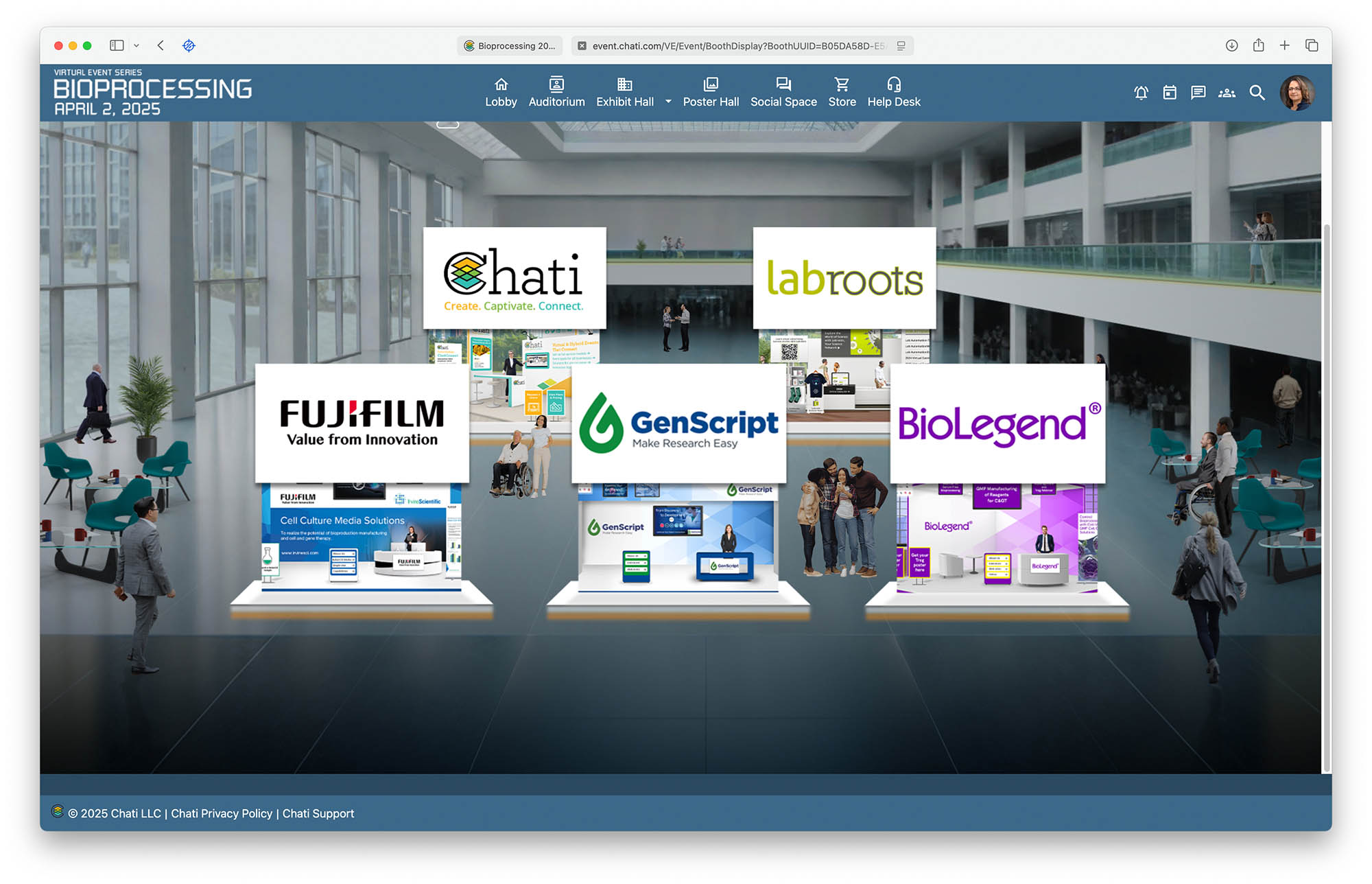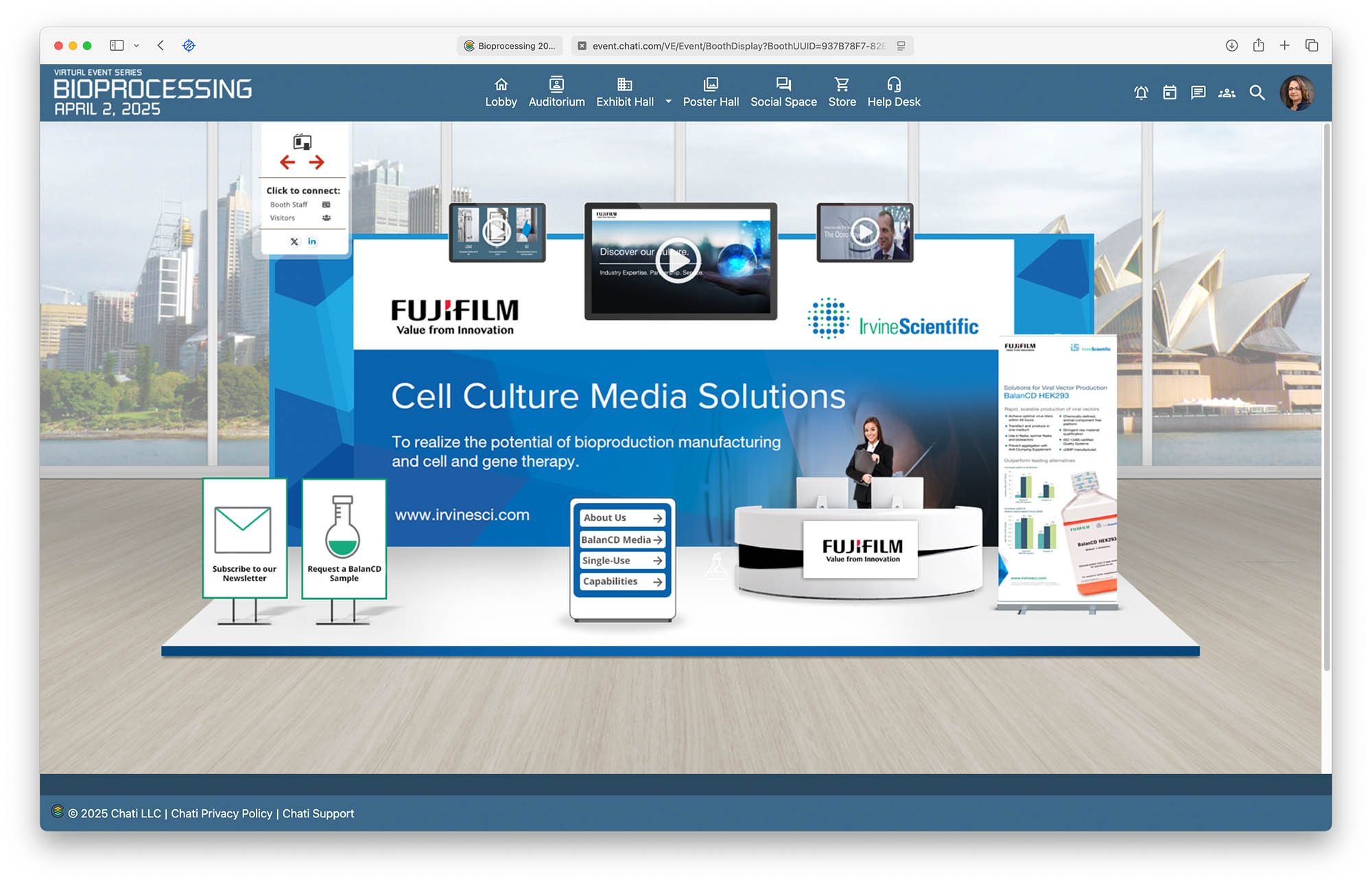 - A virtual exhibit hall with companies showcasing advancements in life sciences and medical technologies.