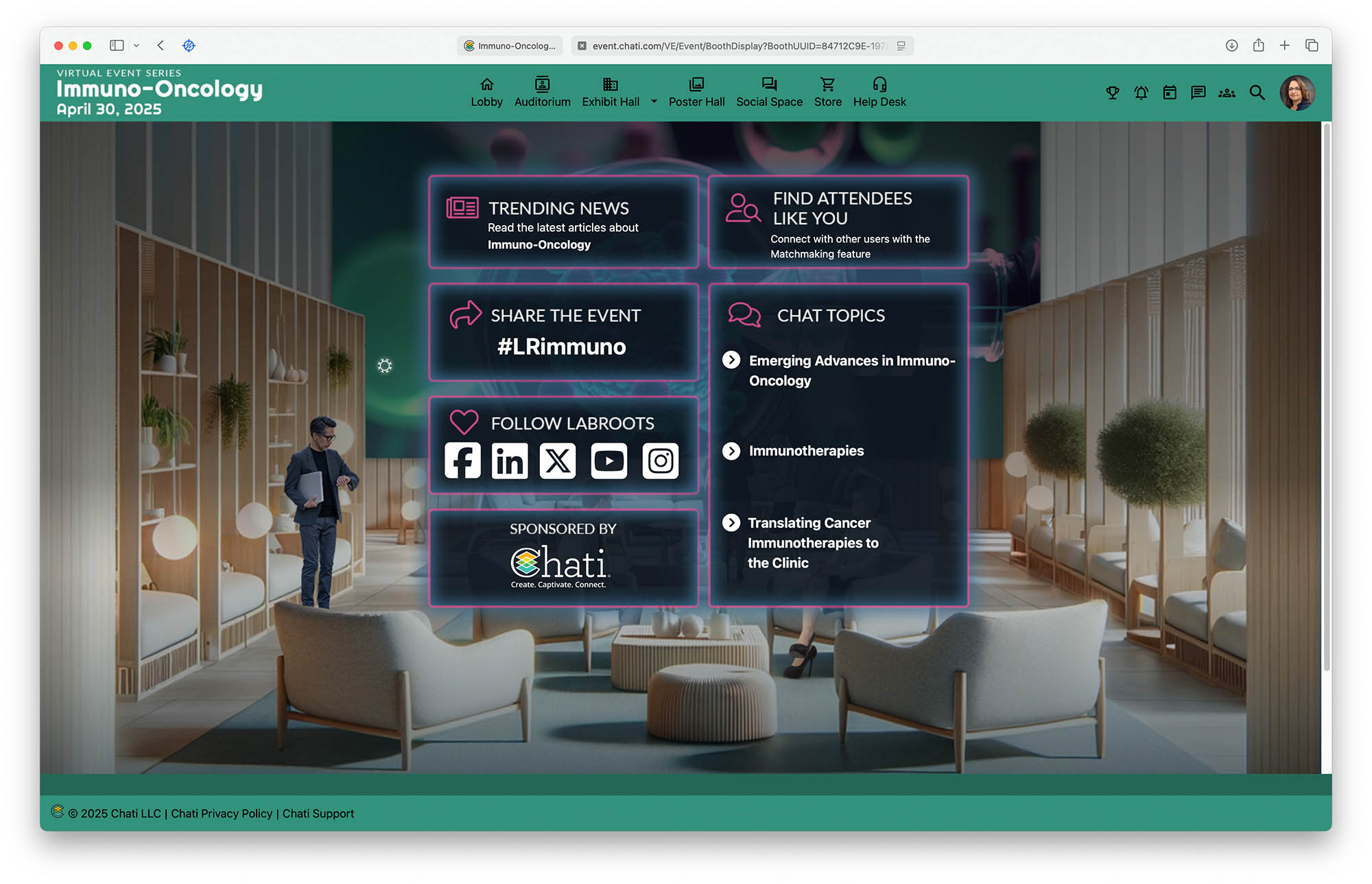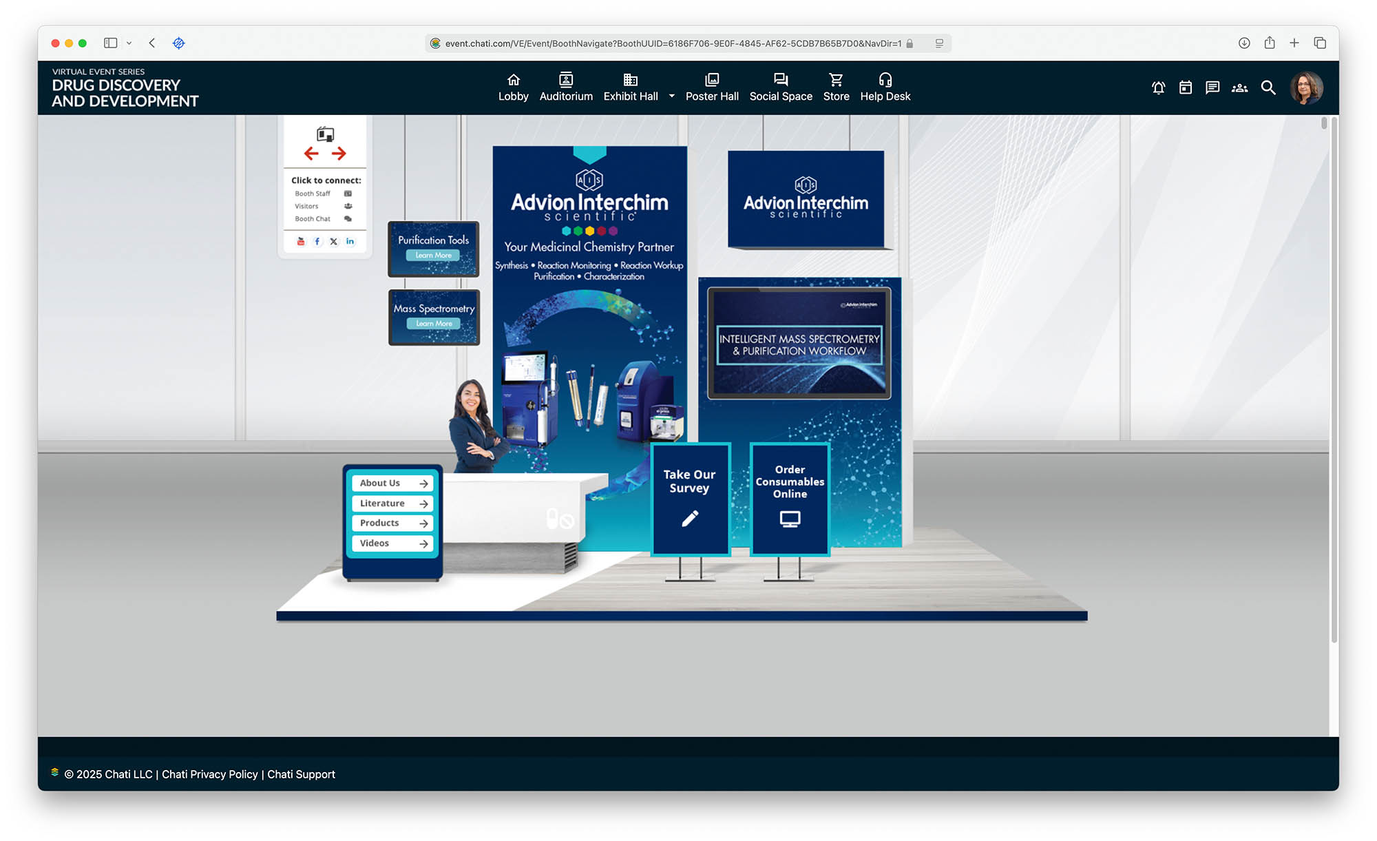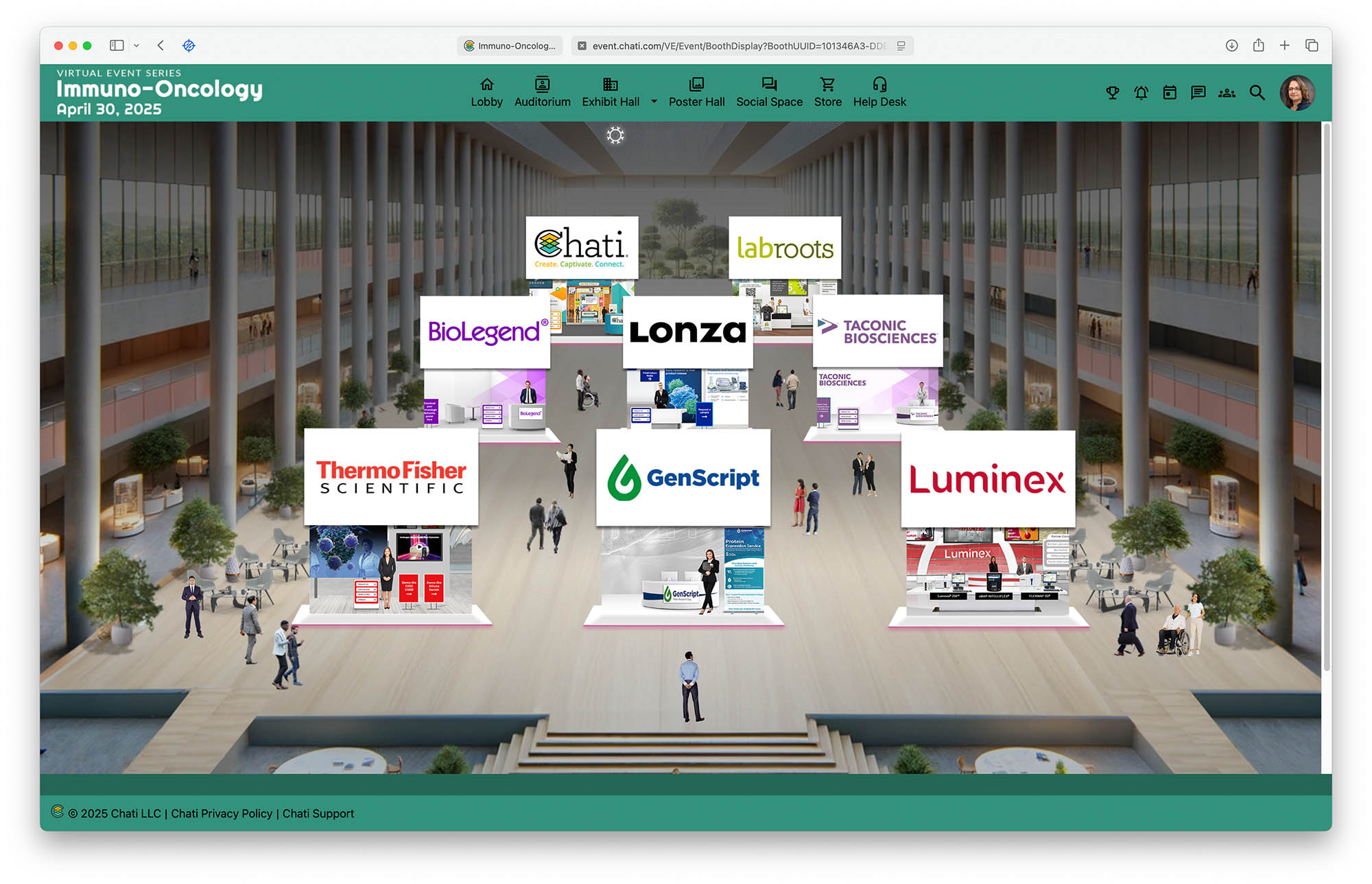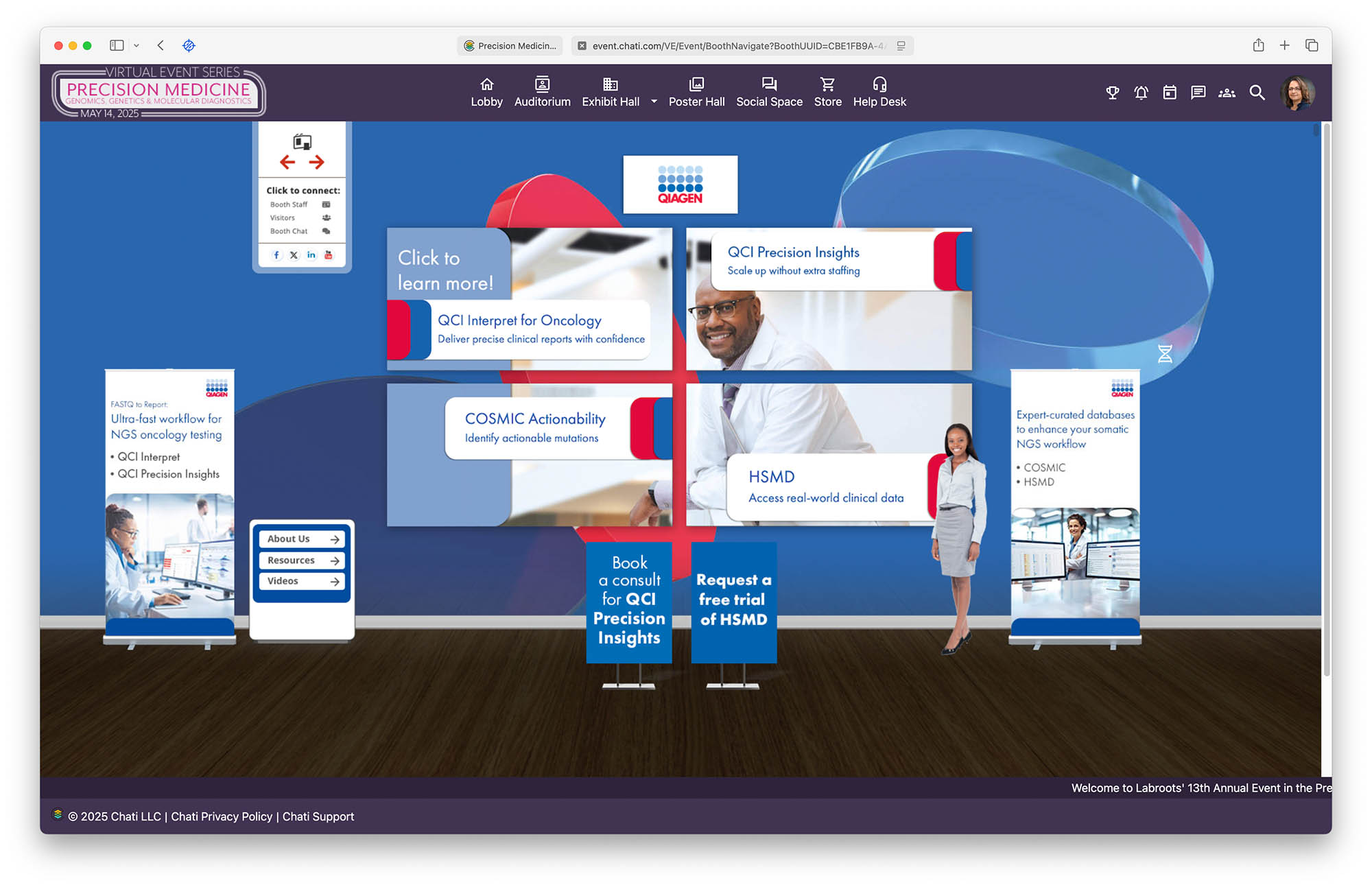 - A virtual exhibit hall with companies showcasing advancements in life sciences and medical technologies.