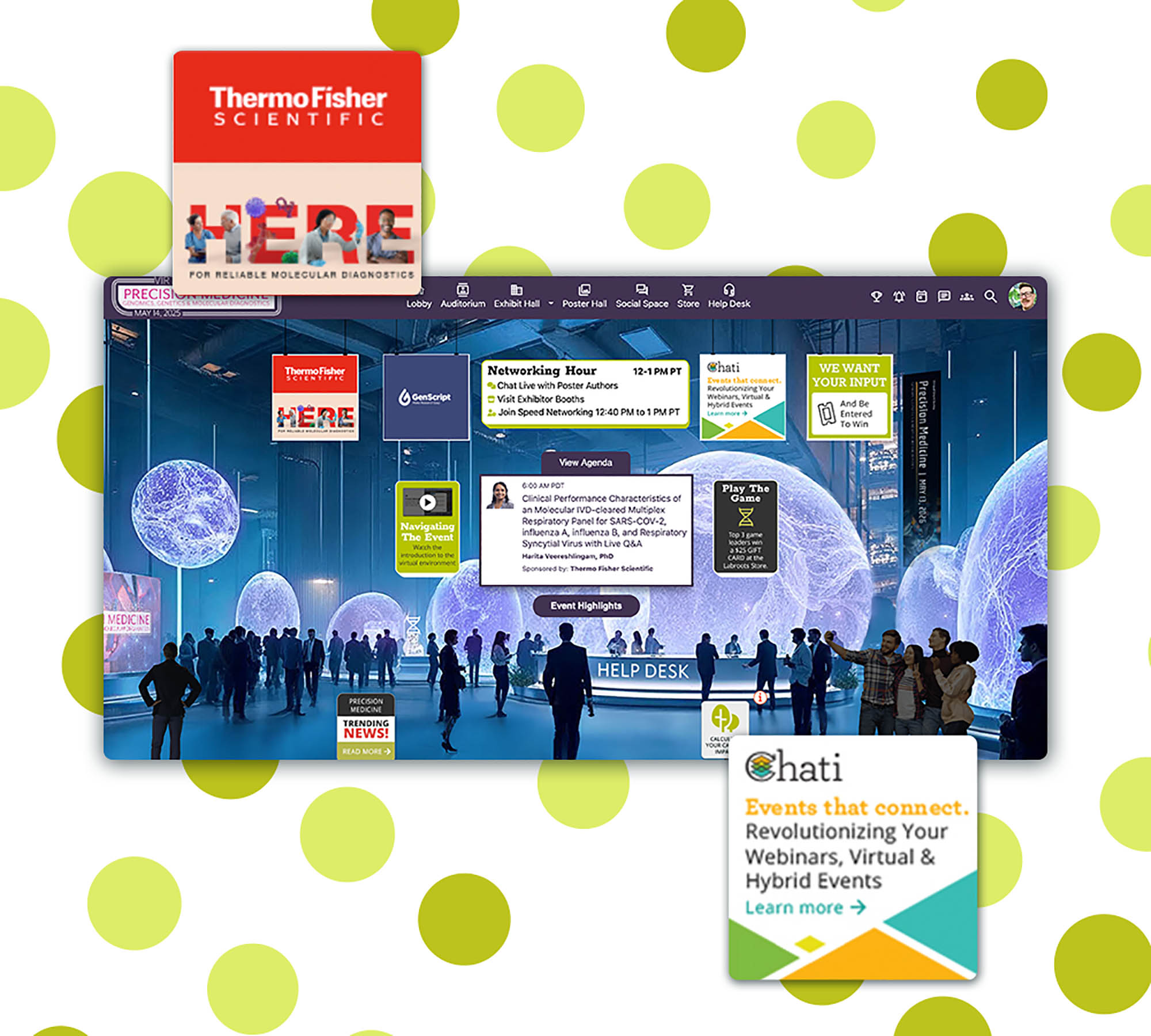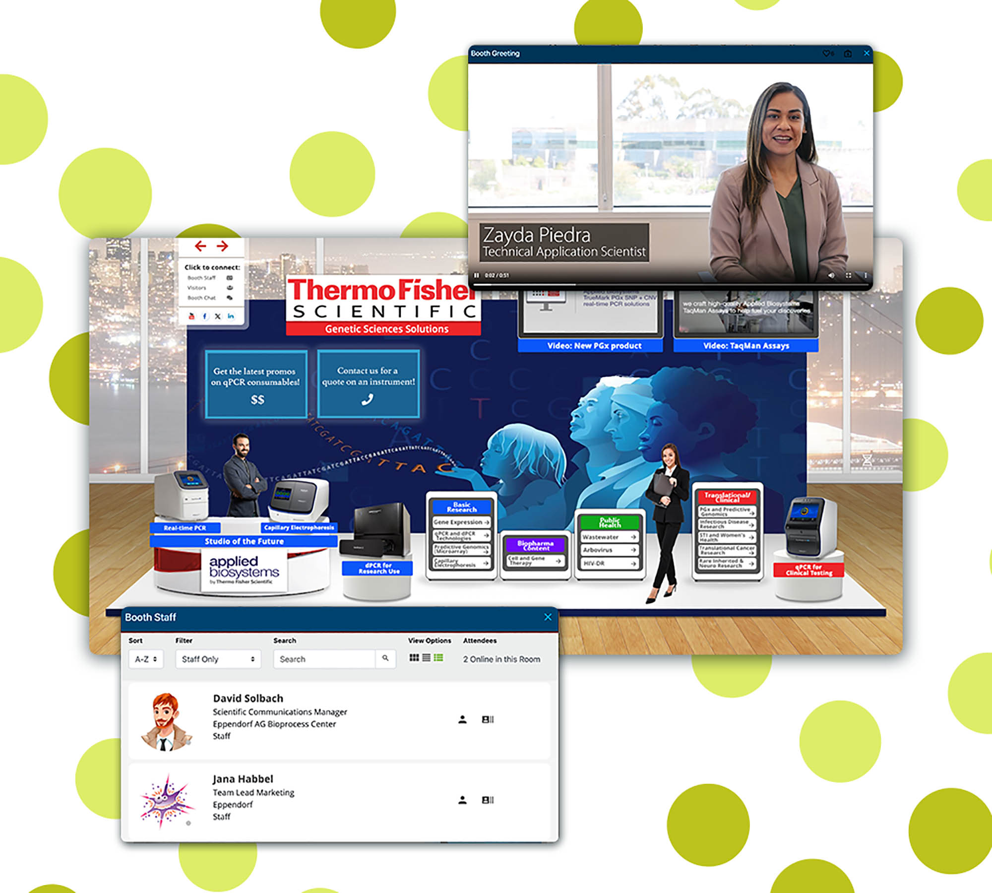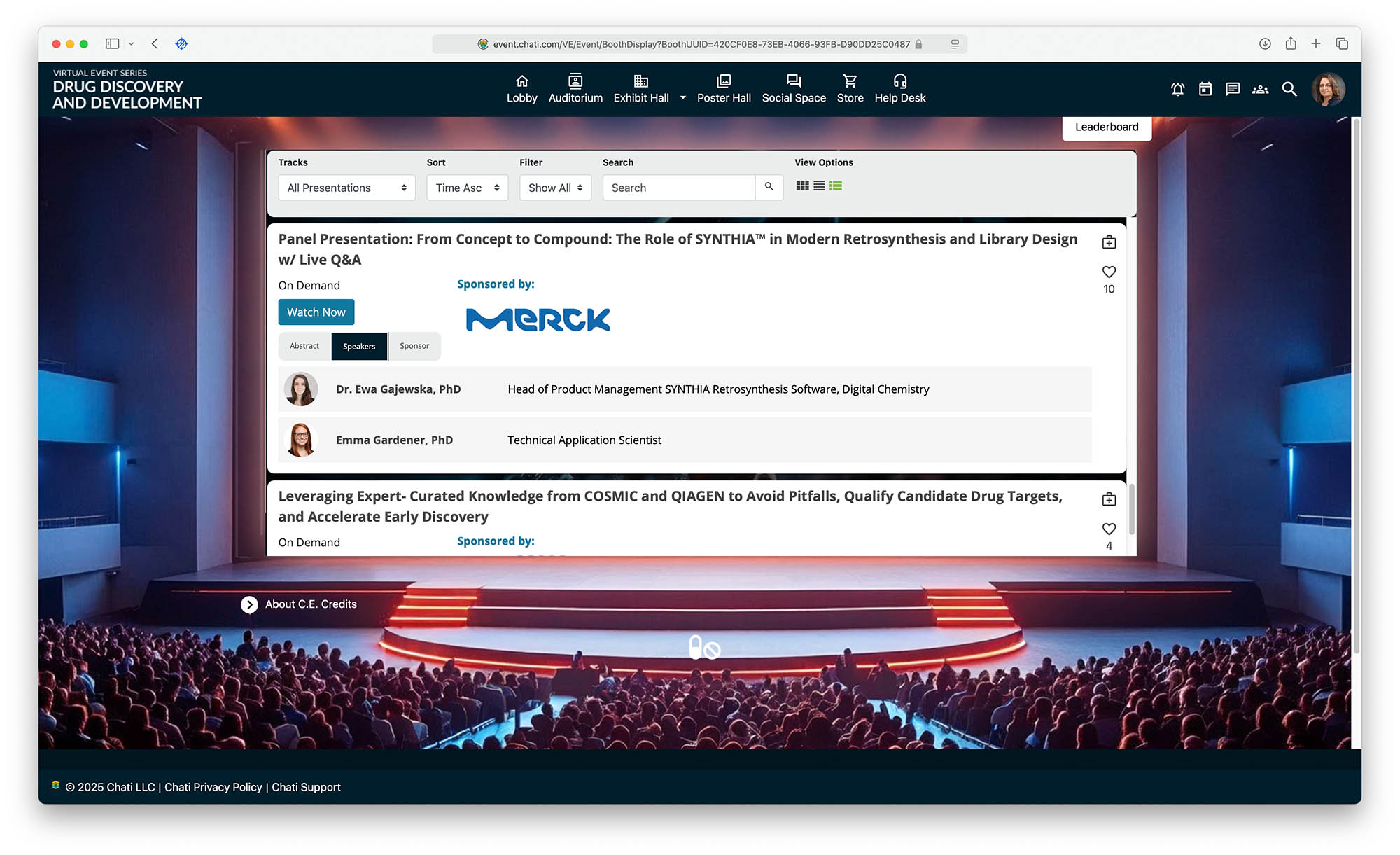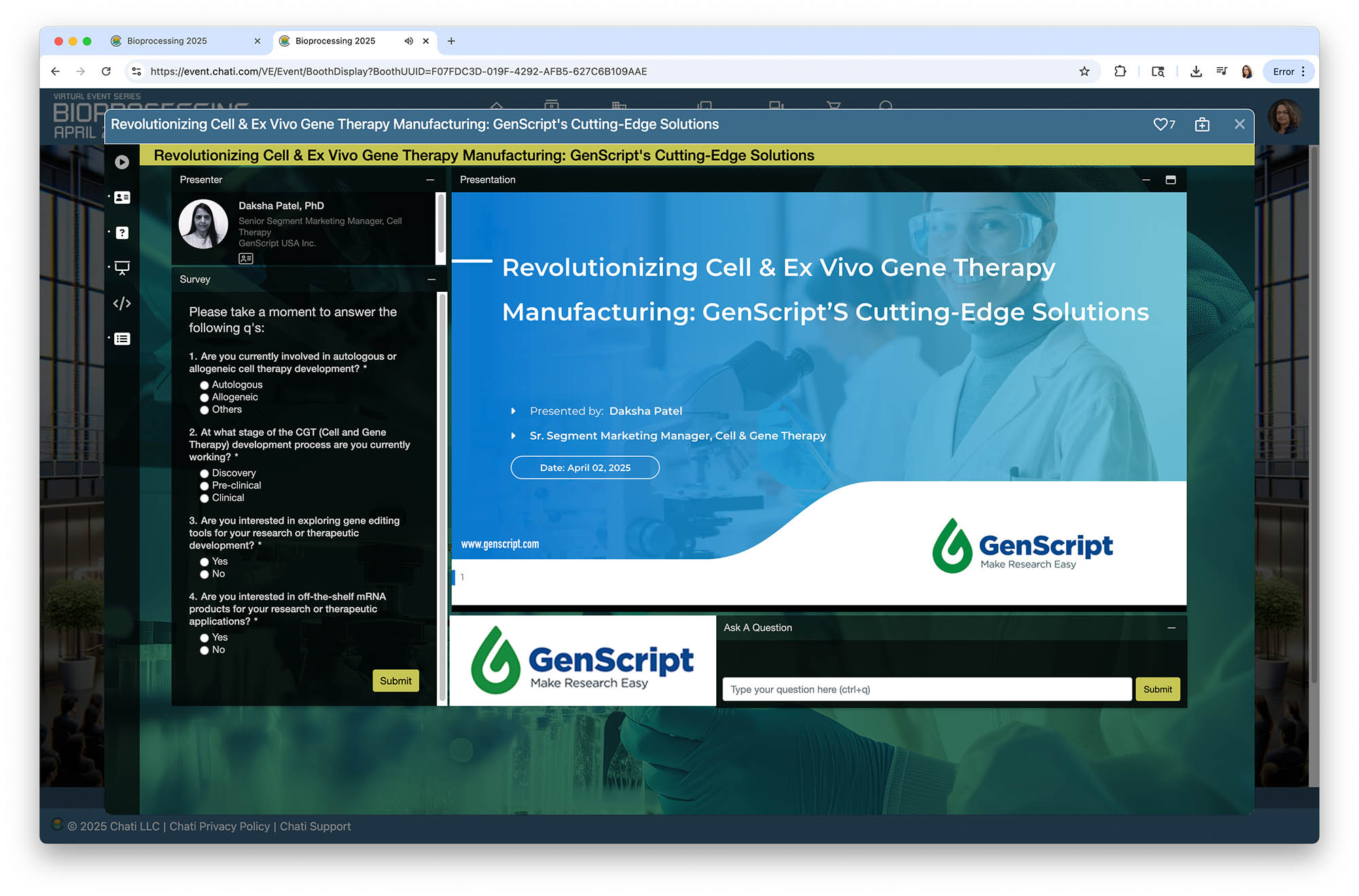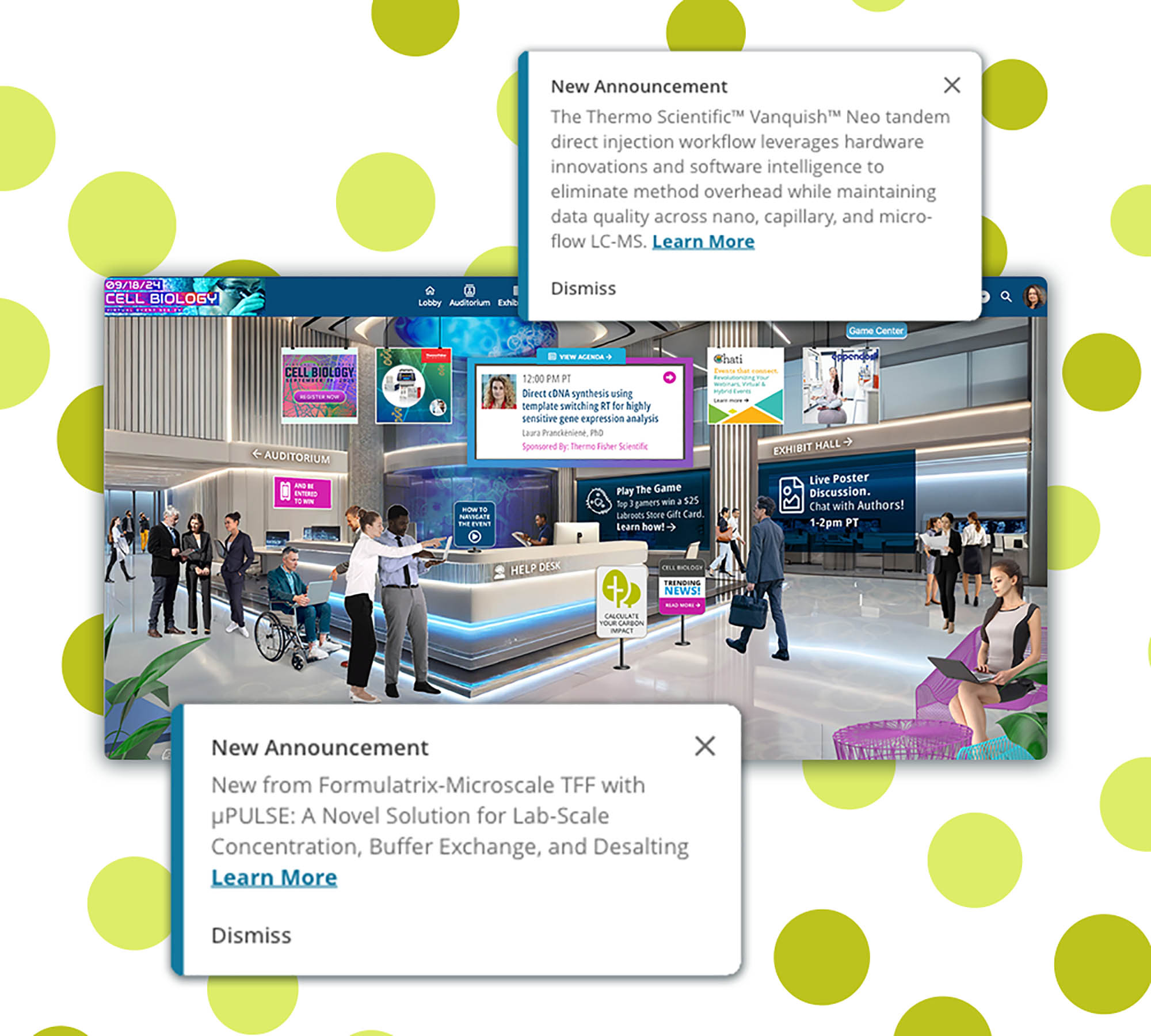 - A virtual exhibit hall with companies showcasing advancements in life sciences and medical technologies.