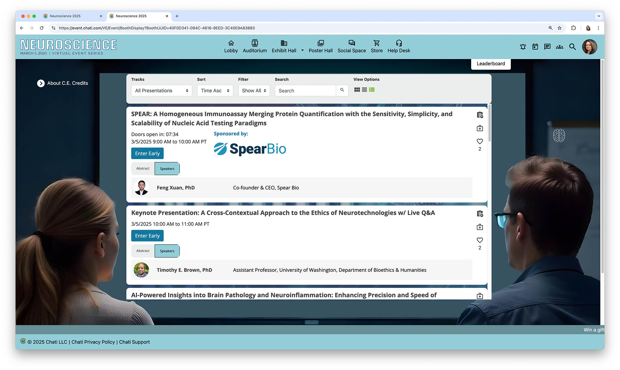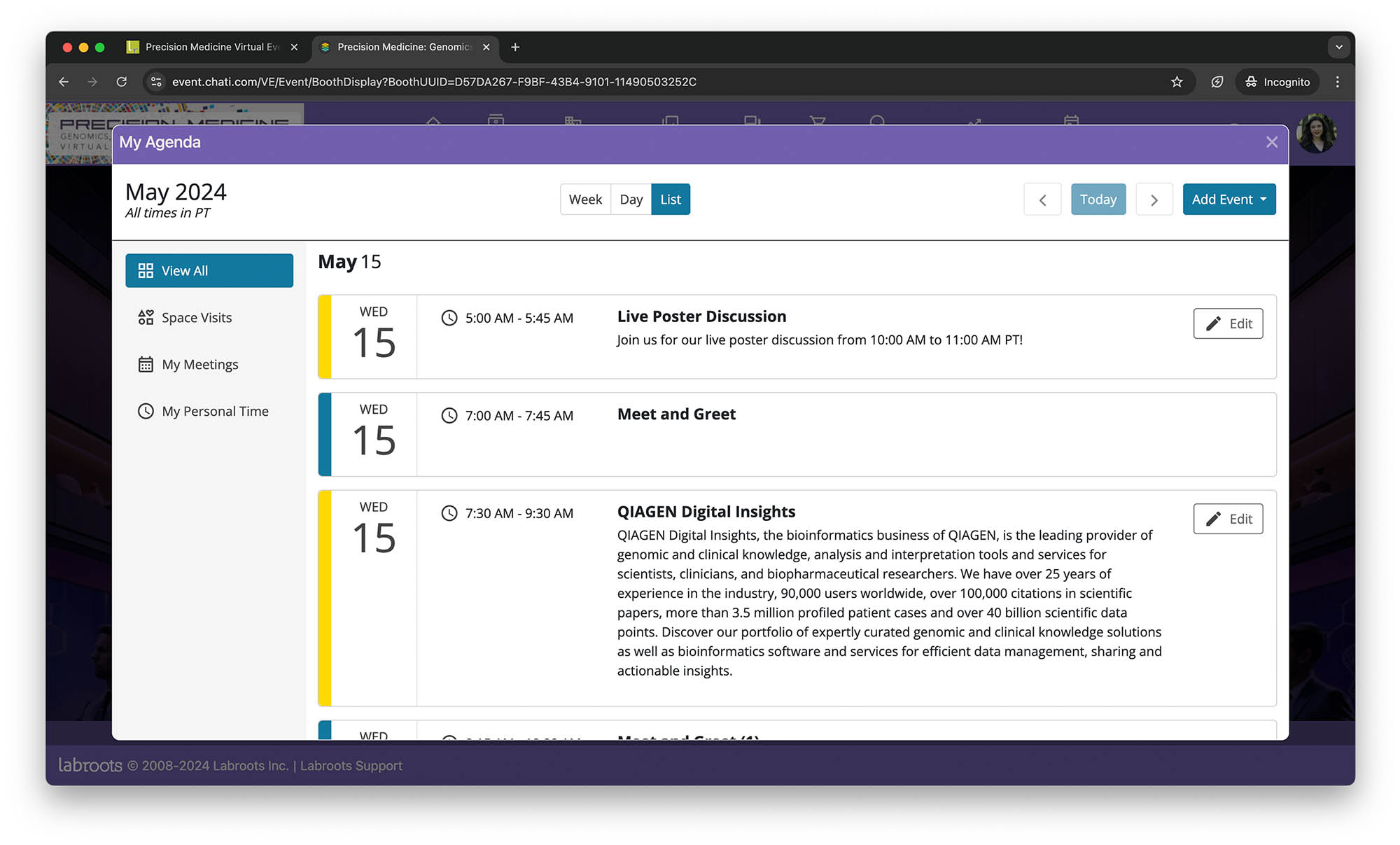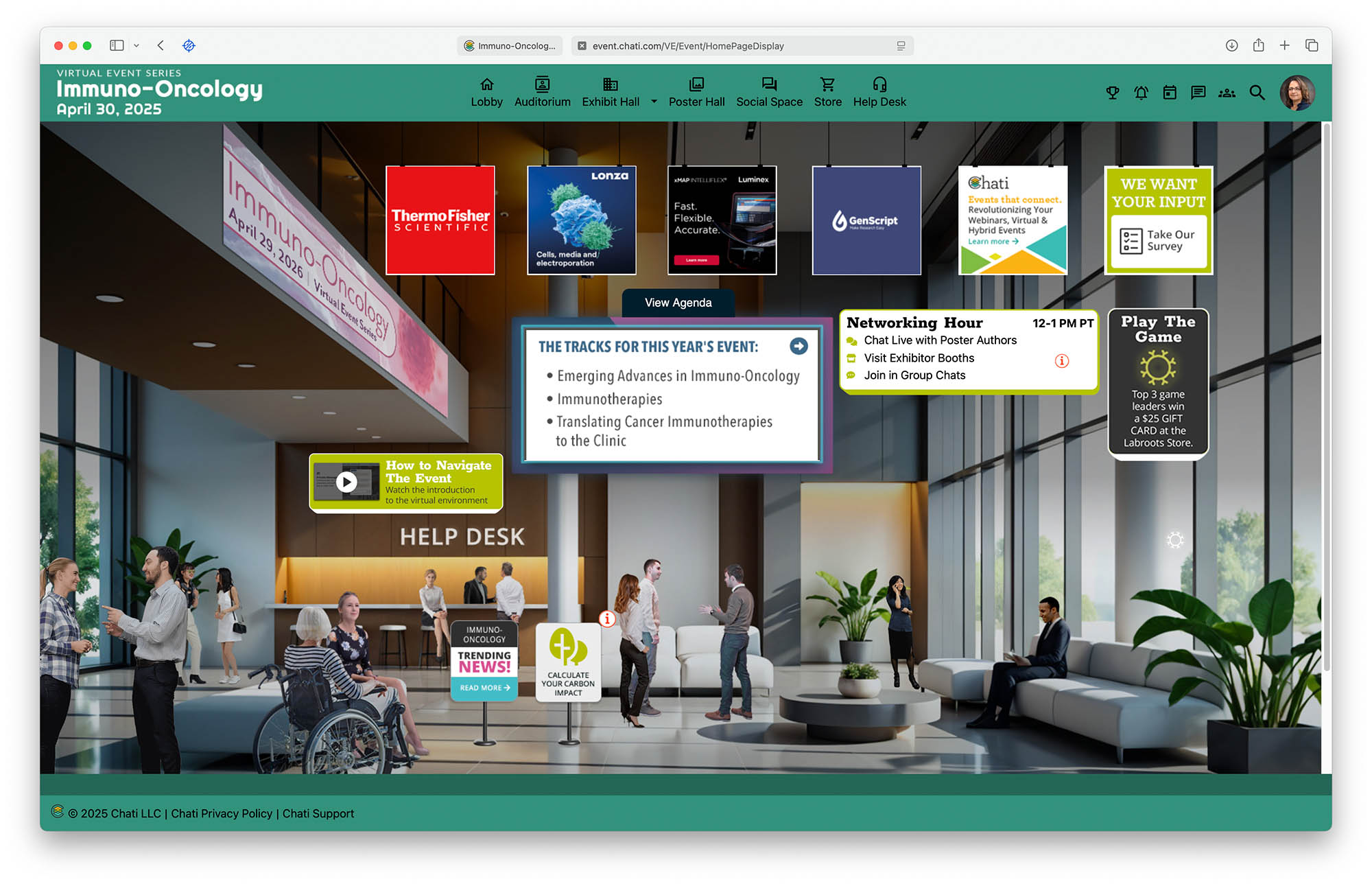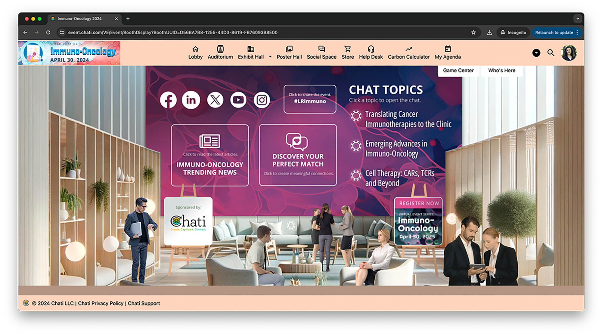 - A virtual exhibit hall with companies showcasing advancements in life sciences and medical technologies.