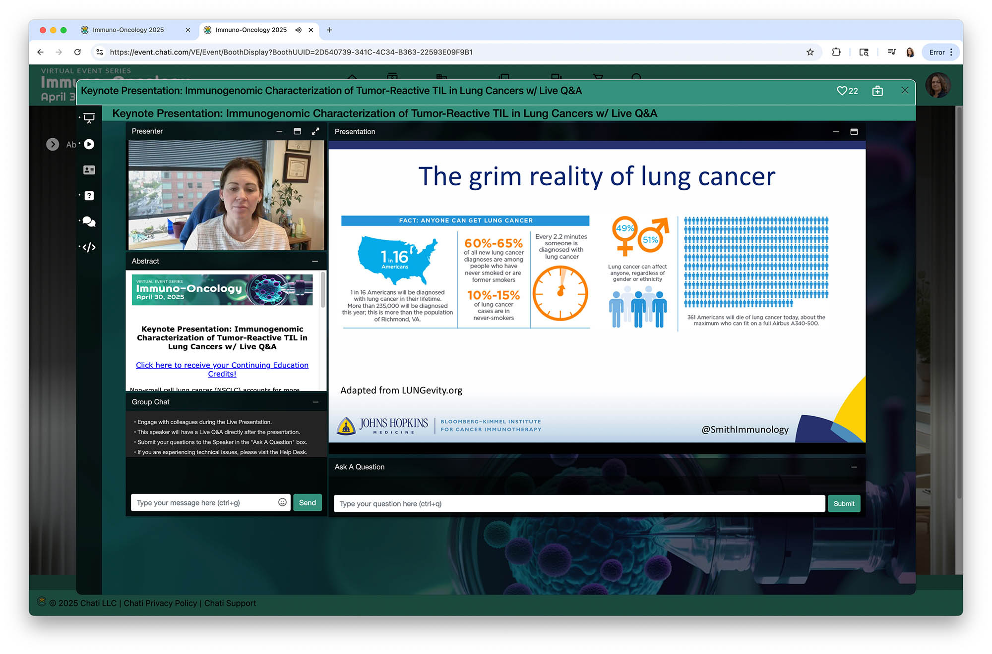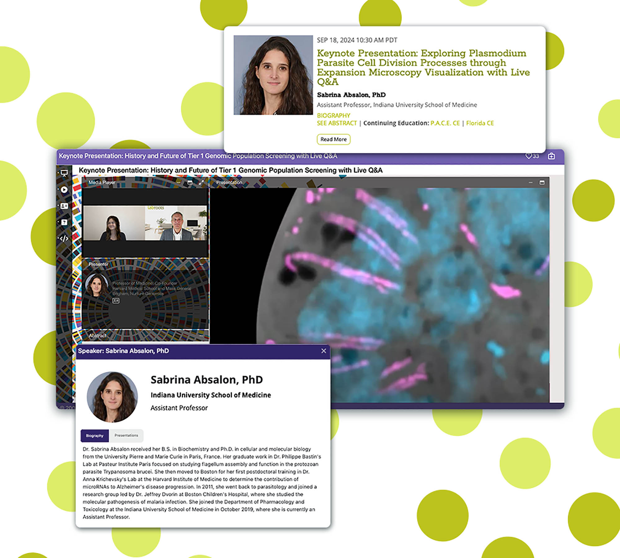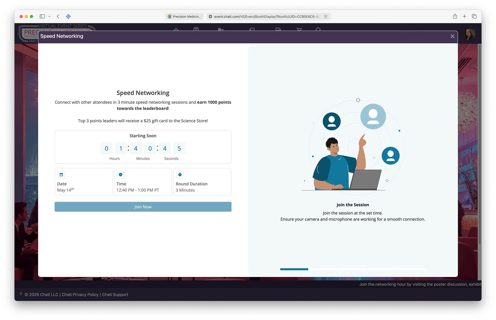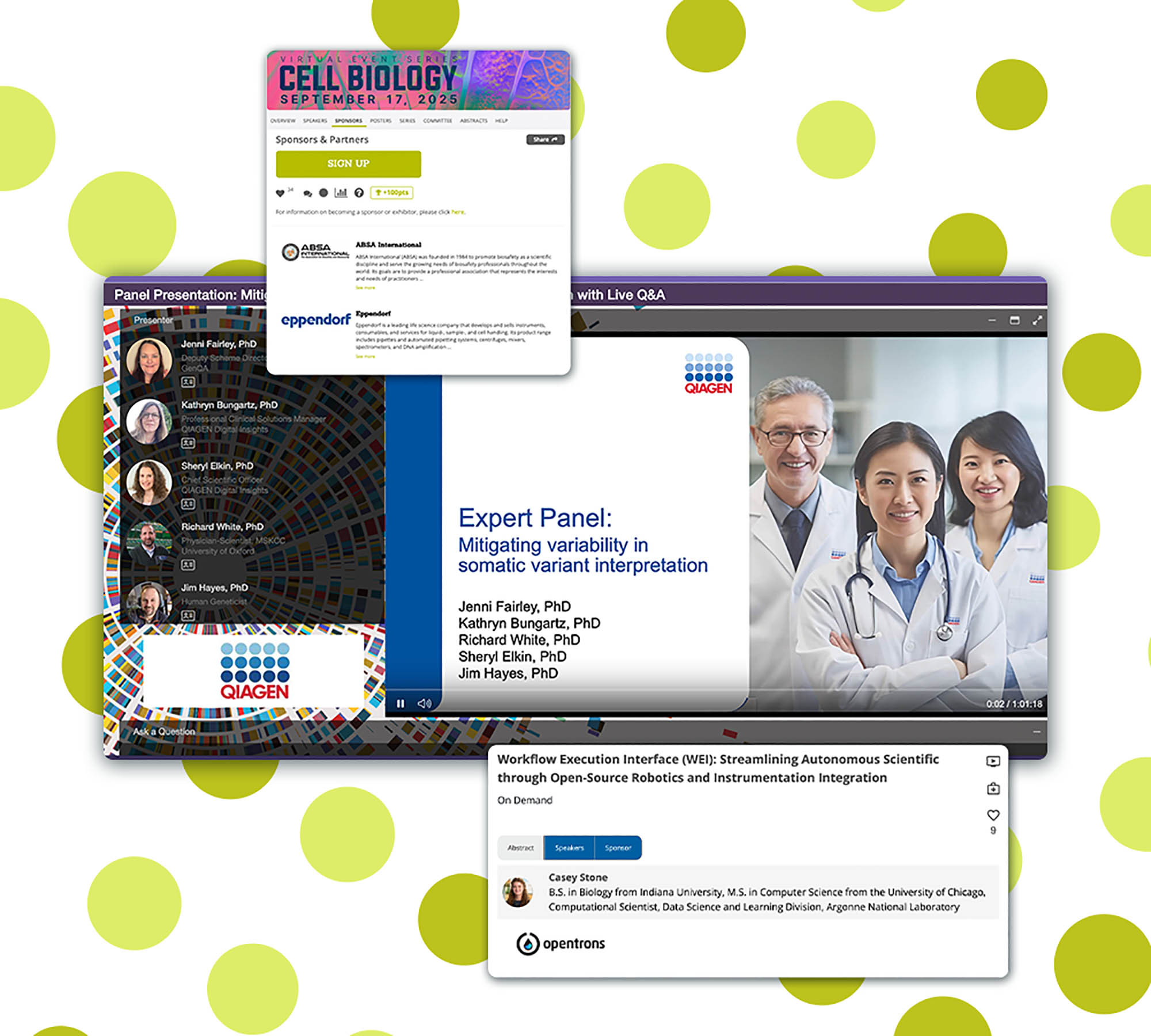 - A virtual exhibit hall with companies showcasing advancements in life sciences and medical technologies.