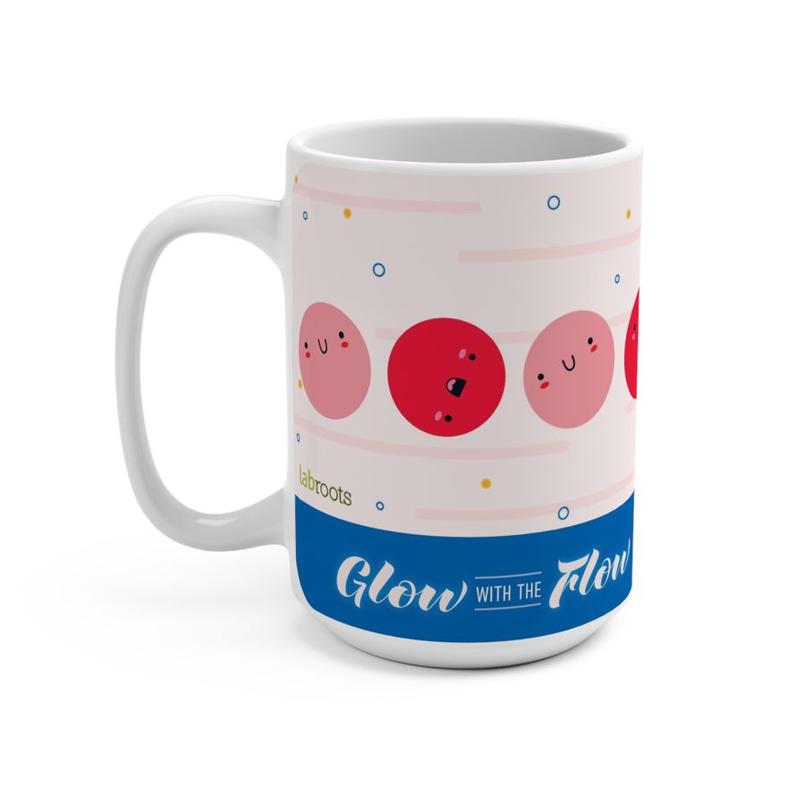 Why stress when you can glow with the flow? Show your love for the Flow Cytometer with this perfect mug for work and home. This mug is made from ceramic and can hold 15 oz (0.44 L) and has a height of 4.72 in and a diameter of 3.15 in. It is also both microwave and dishwasher safe, something we all can love!
