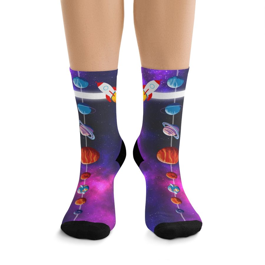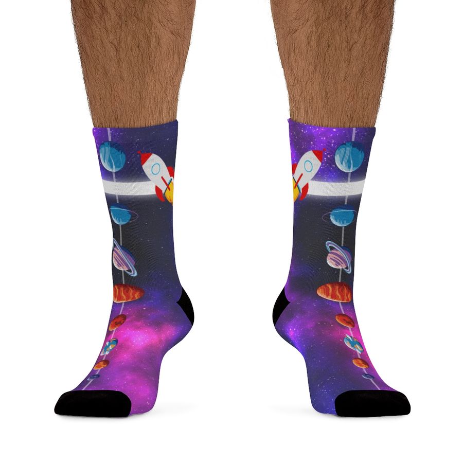 Walk the solar system in these unisex, crew-length, out of this world socks.