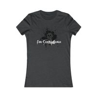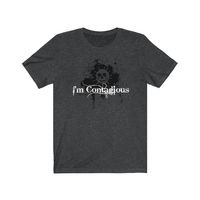 This black and white design features a skull centered in a bacterium, with the cautionary phrase I m contagious, which isn t necessarily a bad thing. The added background of splattered black makes for a edgy shirt for that person you just can t get enough of. Shirt fabric is a high-quality blend of 65% polyester/35% combed ringspun cotton jersey, pre-washed to reduce shrinkage. The ultra-soft shirt...