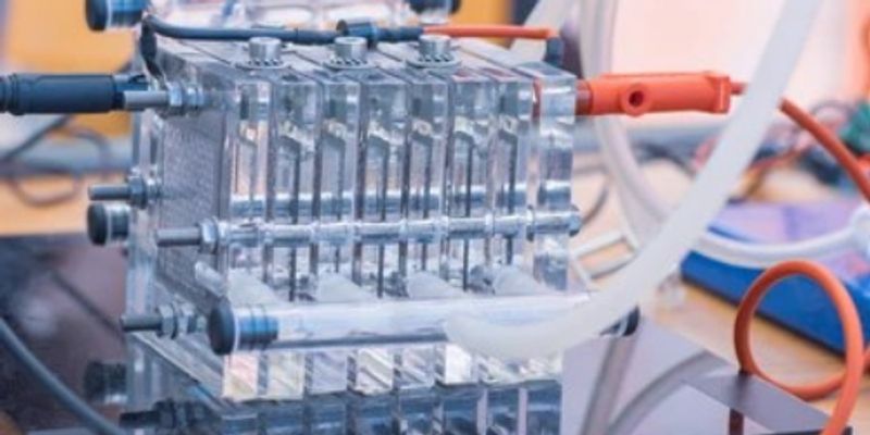 Hydrogen fuel cells produce electricity by combining hydrogen and oxygen atoms. The hydrogen reacts with oxygen across an electrochemical cell similar to that of a battery to produce electricity, water, and small amounts of heat.