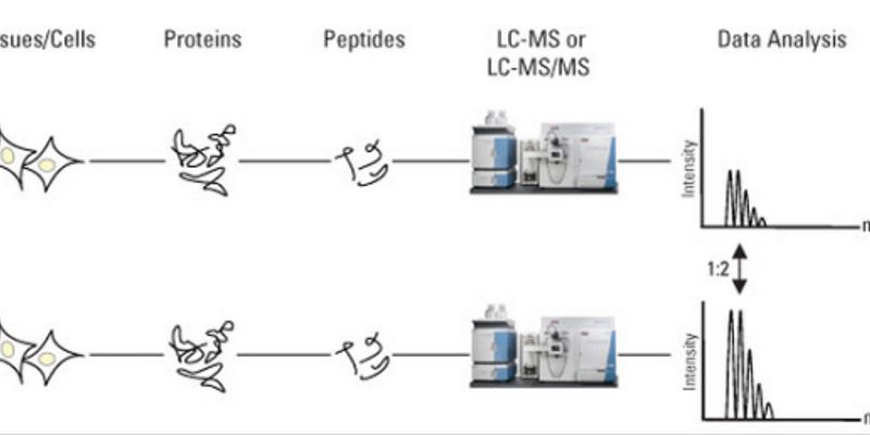 Label-Free Quantification: is a method in mass spectrometry that aims to determine the relative amount of proteins in two or more biological samples. Unlike other methods for protein quantification, label-free quantification does not use a stable isotope containing compound to chemically bind to and thus label the protein.