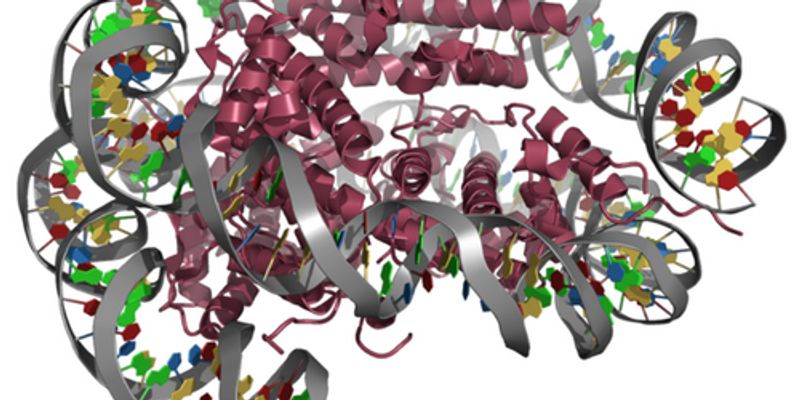 A nucleosome is the basic structural unit of DNA packaging in eukaryotes. The structure of a nucleosome consists of a segment of DNA wound around eight histone proteins, and looks like a thread wrapped around a spool. It's a fundamental subunit of chromatin.