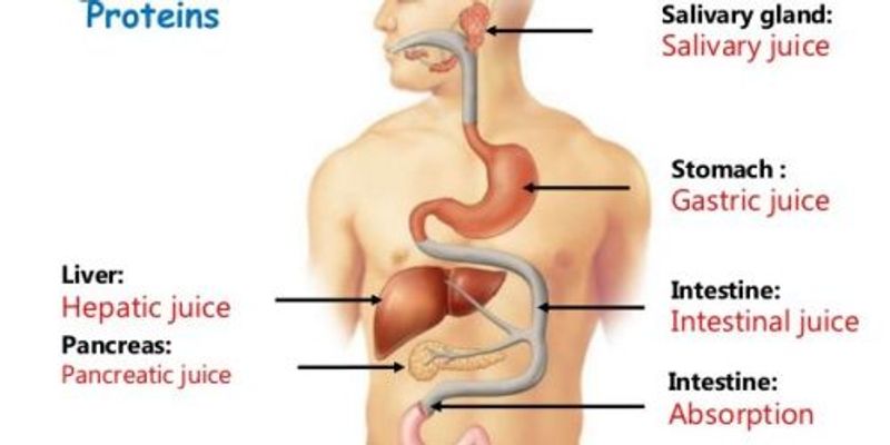 Protein Digestion: occurs in the stomach and duodenum in which 3 main enzymes, pepsin secreted by the stomach and trypsin and chymotrypsin secreted by the pancreas, break down food proteins into polypeptides that are then broken down by various exopeptidases and dipeptidases into amino acids.