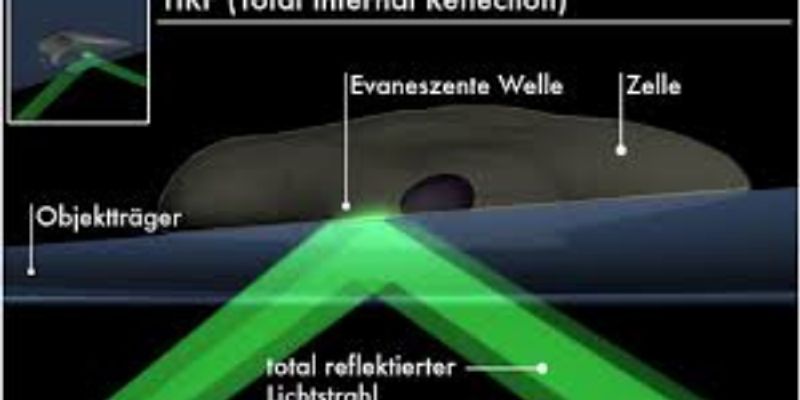 TIRFM is a sophisticated fluorescent microscope that allows a user to visualize a very small region of a specimen. TIRFM utilizes optics to produce light at the interface of the slide. This technique is able to focus light in a highly specialized way that allows imaging of live cells.