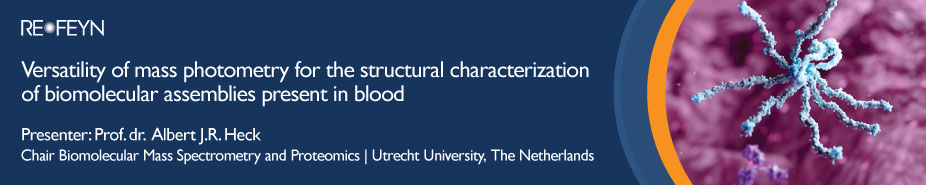 In this webinar recent applications of mass photometry are highlighted especially focusing on higher-order protein assemblies as present in our blood. In particular, the ability of mass photometry to mass analyze co-occurring assemblies is showcased. Based on the mass photometry data, improved structural models could be proposed for the C4b-binding protein (C4BP) macromolecular assembly, and better insight was attained about how multivalency in antibody therapeutics can be exploited to optimize antibacterial biotherapeutics. More, generally the webinar showcases how mass photometry complements other techniques in structural biology, such as (glyco)proteomics, cross-linking mass spectrometry, native mass spectrometry, computational modelling and single molecule mass spectrometry.